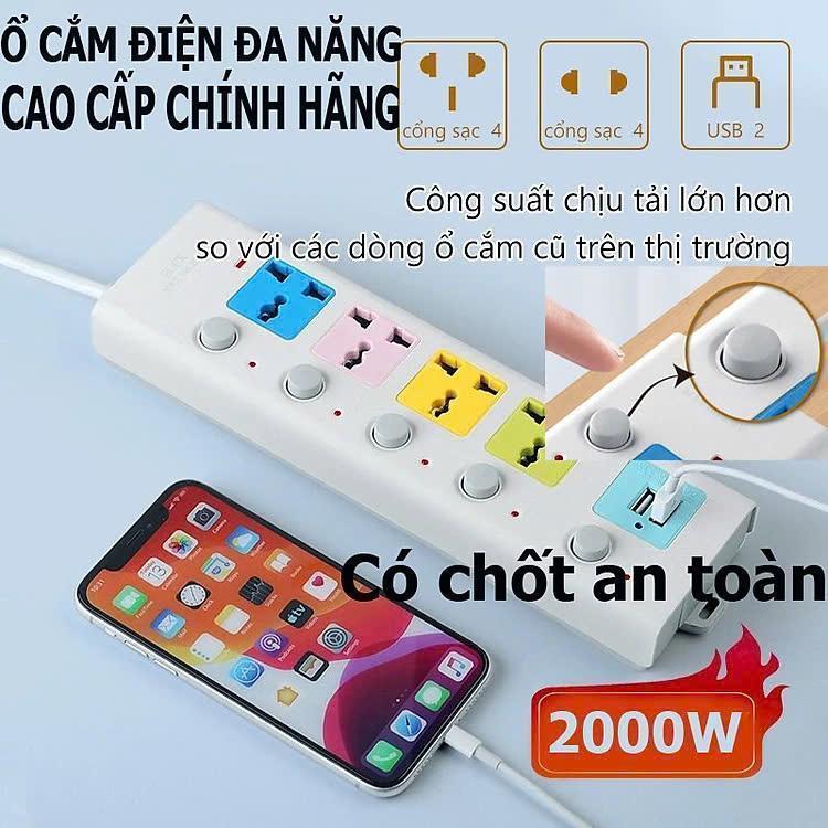 - Công Suất: MAX.10A.110V~220V- LƯU Ý: ko cắm các vật dụng công suất cao như nồi lẩu, nồi cơm điện Thời gian lâu đân đến cháy Ổ cắm điện đa năng thông minh đã trở thành một trong những thiết bị không thể thiếu trong gia đình và văn phòng hiện nay. Với khả năng cung cấp năng lượng cho nhiều thiết bị cùng lúc, ổ cắm điện đa năng thông minh đem lại sự tiện ích và tiết kiệm không gian.- Giới thiệu về ổ cắm điện đa năng thông minh Ổ cắm điện đa năng thông minh là một thiết bị điện dùng để cung cấp năng lượng cho các thiết bị điện tử như điện thoại, máy tính bảng, laptop, đèn LED và nhiều thiết bị khác. Với thiết kế thông minh và tiện dụng, ổ cắm này giúp tối ưu hóa việc sử dụng nguồn điện trong không gian hạn chế.- Công dụng và ưu điểm của ổ cắm điện đa năng thông minh- Tiện ích của ổ cắm điện đa năng Ổ cắm điện đa năng thông minh mang đến nhiều tiện ích vượt trội. Với 2 cổng sạc USB đa năng, bạn có thể dễ dàng sạc đồng thời hai thiết bị di động như điện thoại và máy tính bảng. Điều này giúp tiết kiệm thời gian và tạo sự thuận tiện trong việc sạc pin.- An toàn và bảo vệ thiết bị Ổ cắm điện đa năng thông minh được thiết kế với các tính năng an toàn như bảo vệ quá tải, ngắn mạch và quá áp. Điều này giúp bảo vệ các thiết bị khỏi những rủi ro gây hỏng hóc do nguồn điện không ổn định. Bạn có thể yên tâm sử dụng các thiết bị của mình mà không lo sợ bị hỏng do sự cố điện.- Tiết kiệm không gian Với 4 lỗ cắm điện, ổ cắm điện đa năng thông minh cho phép bạn kết nối nhiều thiết bị điện tử cùng lúc. Điều này giúp tiết kiệm không gian và giảm số lượng ổ cắm cần sử dụng. Bạn không cần phải mua nhiều ổ cắm và tiết kiệm chi phí.- Tính năng của ổ cắm điện đa năng thông minh:- 2 cổng sạc USB đa năng Ổ cắm điện đa năng thông minh đi kèm với 2 cổng sạc USB đa năng, cho phép bạn sạc nhanh chóng các thiết bị di động như điện thoại, máy tính bảng, tai nghe Bluetooth và nhiều thiết bị khác. Bạn không cần phải sử dụng đến bộ sạc riêng biệt và tiết kiệm thời gian.- 4 lỗ cắm điện Ổ cắm điện đa năng thông minh được trang bị 4 lỗ cắm điện, cho phép bạn kết nối nhiều thiết bị điện tử cùng lúc. Bạn có thể sử dụng ổ cắm này cho các thiết bị như đèn, quạt, máy tính để bàn và các thiết bị gia đình khác. Việc kết nối nhiều thiết bị chỉ với một ổ cắm giúp tiết kiệm không gian và tạo sự gọn gàng cho không gian sử dụng.- Dây dài Ổ cắm điện đa năng thông minh đi kèm với dây dài cho phép bạn linh hoạt trong việc đặt đồ điện tử ở bất kỳ vị trí nào trong phòng. Dây dài giúp bạn dễ dàng tiếp cận nguồn điện mà không cần phải kéo dài dây cắm. Điều này đặc biệt hữu ích trong việc sắp xếp không gian và tạo sự tiện lợi cho người sử dụng.- Bộ sản phẩm bao gồm: 1 ổ điện đa năng kèm cáp dài 1M5- Kích thước sản phẩm: 26x7.5x3cm- Trọng lượng sản phẩm: 274g#odien #danang #giadung #4o #congusb #phichcam #3mat #daydai #tiendung #chongchay