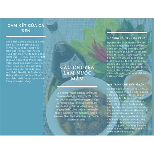 - QUY TRÌNH SẢN XUẤT NƯỚC MẮM CÁ ĐEN * CÁC BƯỚC TIẾN HÀNH: Đầu tiên, nguyên liệu chính của nước mắm: cá cơm phải vừa được đánh bắt xong và chuyển về công ty. Sau đó, cá cơm tươi được trộn với muối theo tỷ lệ 3 cá - 1 muối. Tỷ lệ vàng này đã được duy trì trong các làng nghề làm mắm truyền thống của Việt Nam từ lâu đời để tạo ra loại nước mắm ngon nhất. Sau khi trộn đều cá cơm với muối, sẽ được cho vào chum sành. Quá trình ủ chượp nước mắm Để đảm bảo quy trình sản xuất nước mắm sạch, người ta sẽ gài nén cá lại mà không thêm bất cứ chất bảo quản phụ gia nào vào chum. Tiếp theo, cá được ủ từ 10 đến 12 tháng, sau đó được kéo rút ra và để cho lắng muối xuống 3 tháng. Sau đó mới được đóng chai để bán ra thị trường. Nếu rút ra cho vào chai ngay thì muối sẽ kết tủa lắng đọng dưới đáy chai những hạt muối li ti màu trắng dù có lượt bằng nhiều công đoạn. ĐÓNG GÓI VÀ BẢO QUẢN: Sản phẩm được đóng gói trong một nhà xưởng với quy trình khép kín, tuân thủ các quy định về an toàn vệ sinh thực phẩm và tuân theo quy cách ghi nhãn hàng hóa. Nước mắm được đóng trong chai thủy tinh và chai thủy tinh sẽ giúp giữ cho nước mắm có chất lượng tốt nhất và an toàn giúp người tiêu dùng dễ dàng kiểm chứng giá trị cảm quan của nước mắm. Chỉ có nước mắm truyền thống khi đóng chai thủy tinh mới giữ được thời gian 36 tháng dù không chất bảo quản, không tạo màu, không có hương liệu mà vẫn dậy mùi thơm đặc trưng của cá cơm.
