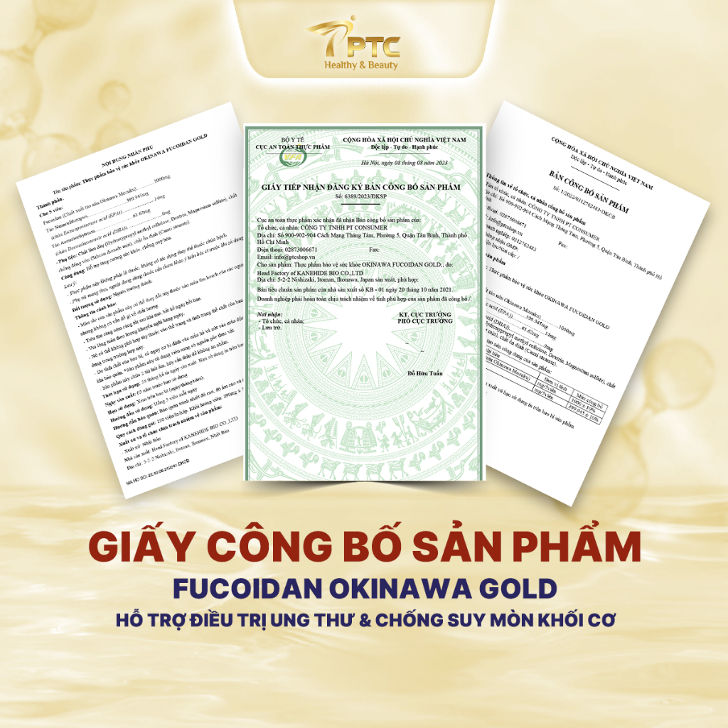 Mua tại TiktokTầm nhìn của nhà sản xuất Kanehide Bio với sản phẩm Okinawa Fucoidan GOLD Theo khuyến cáo từ Hội Dinh Dưỡng đường Tĩnh mạch và đường Tiêu hóa Hoa Kỳ (ASPEN), các chuyên gia khuyên rằng một nguồn dinh dưỡng đầy đủ năng lượng, giàu protid, bổ sung đủ 2g EPA/ngày giúp cho người bệnh ung thư cải thiện được sự ngon miệng, chống suy mòn, cải thiện hoạt động thể lực cũng như tăng tỉ lệ sống sót. Hiểu rõ được nỗi lo lắng, sự mệt mỏi về mặt thể lực, tinh thần mà bệnh nhân ung thư đang phải đối mặt. Cũng như nhìn ra tiềm năng của 2 hợp chất EPA, DHA trong công cuộc hỗ trợ ung thư mà Tập đoàn Kanehide Bio cùng trường Đại Học Miyazaki Nhật Bản đã nghiên cứu và thành công chiết xuất 02 hoạt chất DHA và EPA từ tảo Labyrinthula và Nannochloropsis tại vùng biển Okinawa Nhật Bản , đây là loại chủng vi tảo đại dương duy nhất có chứa hàm lượng DHA và EPA cao vượt trội, hơn hẳn các loại cá biển. Thông tin chi tiết Nếu ở Okinawa Fucoidan Kanehide Bio 180 viên – giúp giải quyết được những vấn đề xoay quanh việc phòng và hỗ trợ ung thư thì ở phiên bản mới – OKINAWA FUCOIDAN GOLD là sự kết hợp hoàn hảo của Fucoidan chiết xuất từ rong nâu Mozuku tại vùng biển Okinawa cùng 2 loại axit béo không no chiết xuất 100% từ thực vật là EPA (từ vi tảo biển Nannochloropsis) và DHA (từ vi tảo biển Aurantiochytrium) giúp giải quyết thêm được tình trạng suy mòn khối cơ dẫn đến tử vong ở bệnh nhân ung thư. Ngoài ra, nhờ được chiết xuất theo công thức độc quyền với những tiêu chuẩn khắt khe, nghiêm ngặt giúp bộ 3 Fucoidan – EPA – DHA đóng vai trò bổ sung các dưỡng chất thiết yếu cho cơ thể, tăng cường hệ miễn dịch, giúp hỗ trợ phòng – ung thư. PTC chúng tôi hiện đang cung cấp dòng sản phẩm Okinawa Fucoidan GOLD do Kanihide Bio nghiên cứu và sản xuất – sản phẩm hàng đầu trong việc hỗ trợ ung thư – chống suy mòn khối cơ – tăng cường hệ miễn dịch cho cơ thể, chống lại sự hình thành và phát triển của tế bào ung thư được các chuyên gia, bác sĩ hàng đầu Nhật Bản tin dùng. Chi tiết về sự khác biệt của Okinawa Fucoidan GOLD Với Okinawa Fucoidan GOLD, sự góp mặt của 03 nguồn tài nguyên quý giá với sức mạnh hỗ trợ phòng – ung thư, cung cấp dinh dưỡng đầy đủ cho cơ thể chính là điểm nhấn của sản phẩm này. 100% chiết xuất tại vùng biển Okinawa Nhật Bản Sự 02 hợp chất axit béo không no EPA (từ vi tảo biển Nannochloropsis) – DHA (từ vi tảo biển Aurantiochytrium), đây là 02 hoạt chất chiết xuất 100% thực vật giúp chống lại tùy trạng suy mòn khối cơ. Sản phẩm nổi bật với tính axit kiềm cao, chống oxy hóa, có độ lành tính vượt trội Fucoidan – EPA – DHA – Sự kết hợp hoàn hảo Fucoidan: (chiết xuất rong nâu Mozuku Okinawa) là một chất nhờn được tìm thấy trong tảo biển như tảo nâu Mozuku Okinawa. Chiết xuất rong nâu Mozuku nổi bật với bề mặt trơn nhầy đặc trưng có chứa hàm lượng Fucoidan cao, có chức năng tăng cường miễn dịch, tiêu diệt tế bào ung thư theo chu trình tự chết (Apoptosis), ngăn sự phát triển của khối u, ngừa di căn,… EPA thực vật (bột tảo biển Nannochloropsis – một loại vi tảo đại dương) có chứa hàm lượng EPA cao – axit béo không no thiết yếu mà cơ thể không tự sản xuất được bên trong tế bào. Đặc biệt, EPA nổi bật với tác dụng kháng viêm bằng cách hạn chế việc sản xuất proinflammatory cytokine và giảm yếu tố gây thủy phân protein vốn là hai quy trình căn nguyên gây ra sự sụt cân ở người bệnh ung thư. Việc sử dụng EPA cho sản phẩm OKINAWA FUCOIDAN GOLD giúp cơ thể người bệnh cải thiện được tình trạng sụt cân, suy mòn khối cơ trong quá trình bệnh ung thư. DHA thực vật (Bột tảo biển Labyrinthula (Aurantiochytrium) một loại vi tảo đại dương) – là chất béo nhóm omega – 3 chính trong não bộ, đảm bảo hoạt động chức năng bình thường của não cũng như hệ thống thần kinh.Với đặc điểm nổi bật là tích trữ DHA bên trong tế bào – một trong những axit béo thiết yếu không thể sản xuất trong cơ thể con người. DHA nổi bật với khả năng chống viêm qua đó giảm nguy cơ mắc một số loại ung thư bao gồm ung thư đại trực tràng, ung thư tuyến tụy, ung thư vú và ung thư tuyến tiền liệt ở nam giới. Về mặt tế bào, DHA ức chế sự phát triển của các tế bào ung thư, cải thiện hiệu quả ung thư bằng phương pháp hóa trị. Ngoài ra, OKINAWA FUCOIDAN GOLD còn nổi bật với 03 ưu điểm vượt trội khác như: – Hàm lượng Fucoidan cao: với tỉ lệ vàng 100% nguyên chất với hàm lượng tối ưu dùng tốt cho người mắc ung thư. – Công nghệ sản xuất thông minh và hiện đại bậc nhất thế giới: OKINAWA FUCOIDAN GOLD được sản xuất bởi Tập đoàn Kanehide Bio, chuyên nghiên cứu và sản xuất các sản phẩm có nguồn gốc thiên nhiên tại quần đảo Okinawa. Kanehide Bio sở hữu nhà máy sản xuất hiện đại bậc nhất, đạt chuẩn mọi chứng nhận khắt khe nhất tại Nhật Bản như chứn