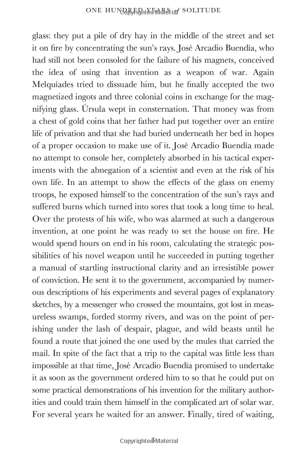 It is typical of Gabriel García Márquez that it will be many pages before his narrative circles back to the ice, and many chapters before the hero of One Hundred Years of Solitude, Buendía, stands before the firing squad. In between, he recounts such wonders as an entire town struck with insomnia, a woman who ascends to heaven while hanging laundry, and a suicide that defies the laws of physics:
