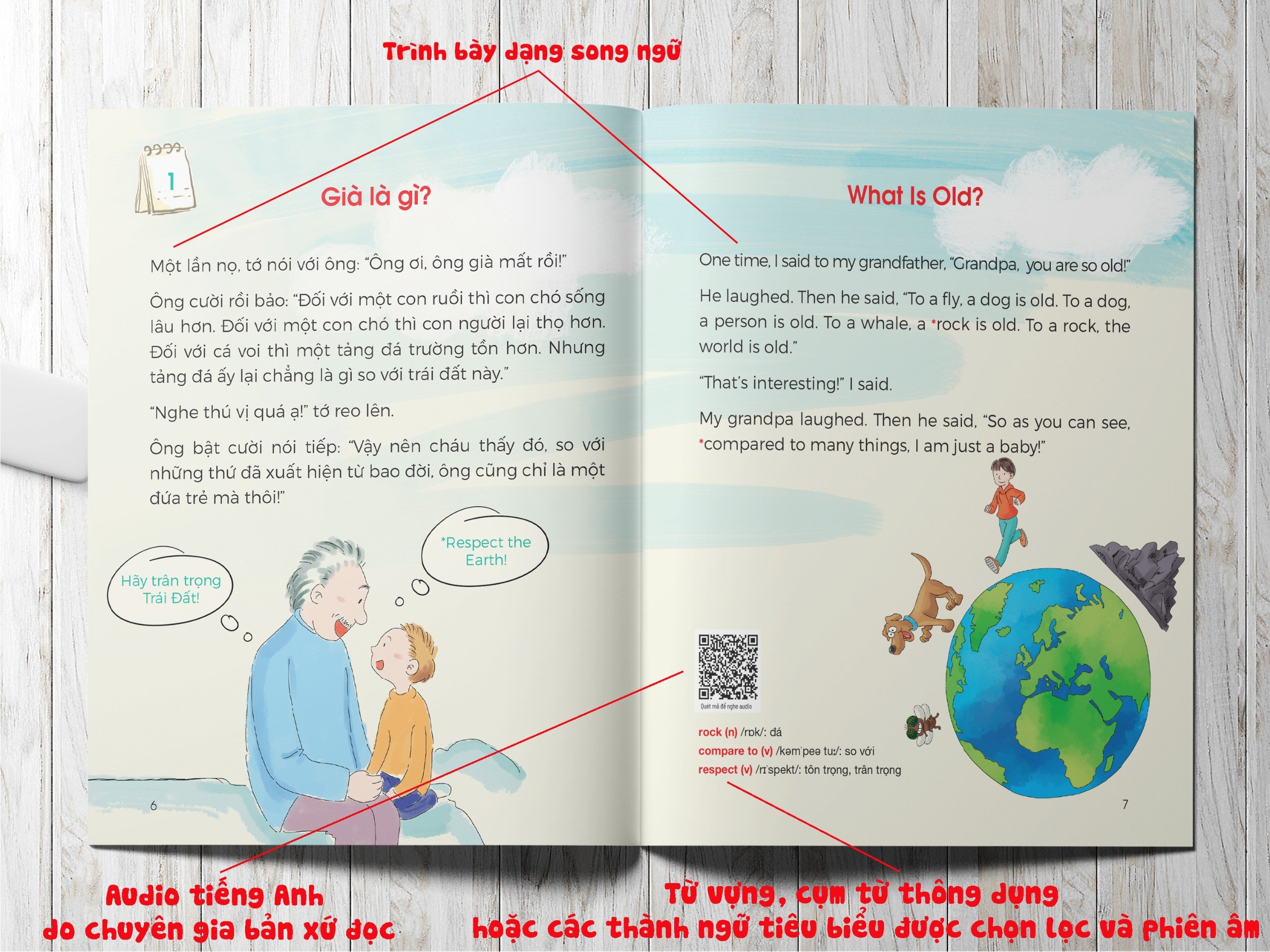Combo Sách - One Story A Day - 365 câu chuyện truyền cảm hứng và giáo dục nhân cách 12 cuốn- Bản song ngữ kèm file nghe
