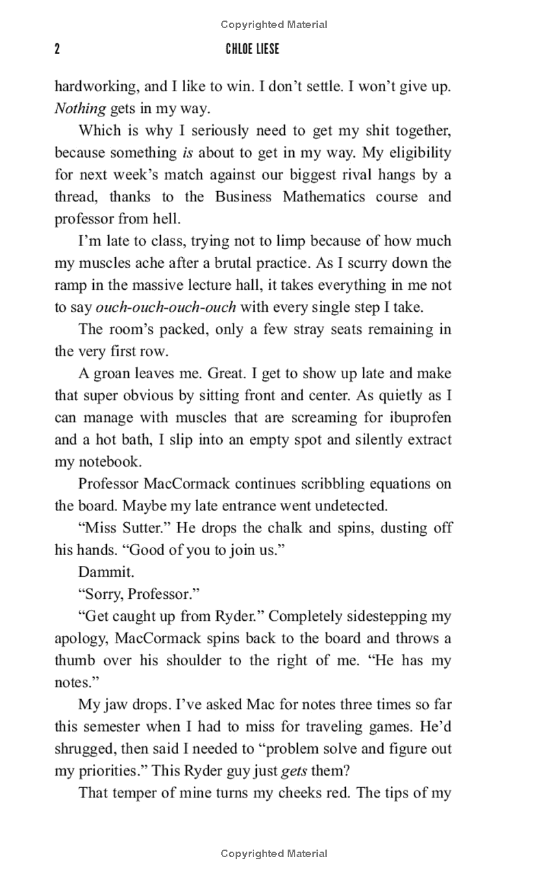 She's a thorn in my side, a menacing, cantankerous, pain-in-the-ass who's turned our Business Mathematics course into a goddamn gladiator arena. I'll leave this war zone unscathed, coming out on top…And if I have my way with that crazy-haired, ball-busting hellion, that will be in more than one sense of the word.