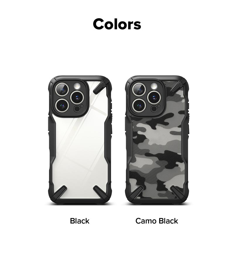 • Do thiết kế phần camera của iPhone 16/16 Plus khác với iPhone 16 Pro/16 Pro Max nên với dòng ốp Fusion X cũng có sự khác nhau ở vị trí camera. Với dòng máy iPhone 16 Pro/16 Pro Max, phần camera được thiết kế cụm nguyên khối, trong khi dòng máy iPhone 16/16 Plus thì phần camera khoét lỗ.