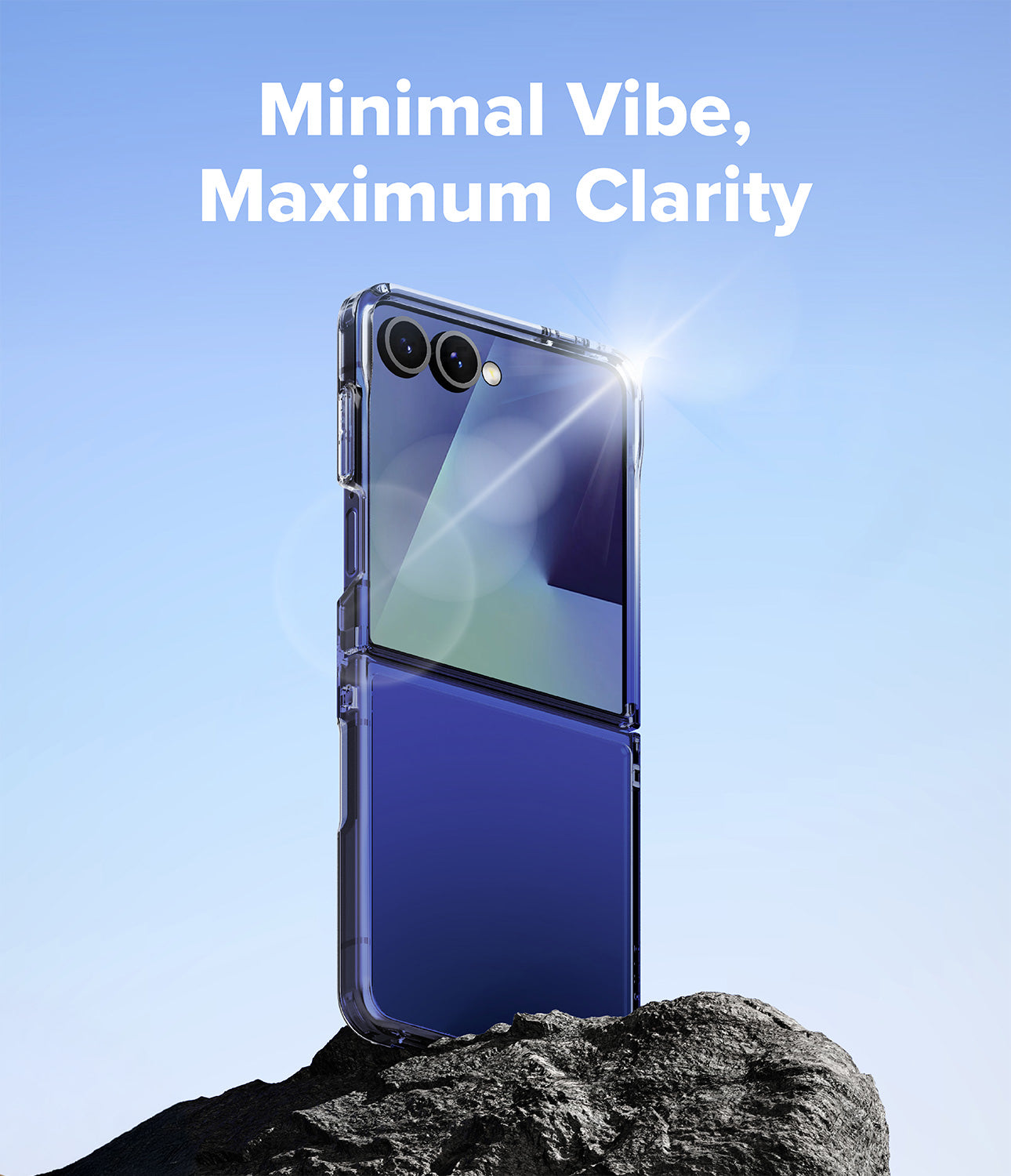 Ốp lưng Samsung Galaxy Z Flip 6 RINGKE Fusion có thiết kế trong suốt và kết nối phần trên và phần dưới ốp lưng, giúp giữ nguyên vị trí trong khi mở và đóng thiết bị.