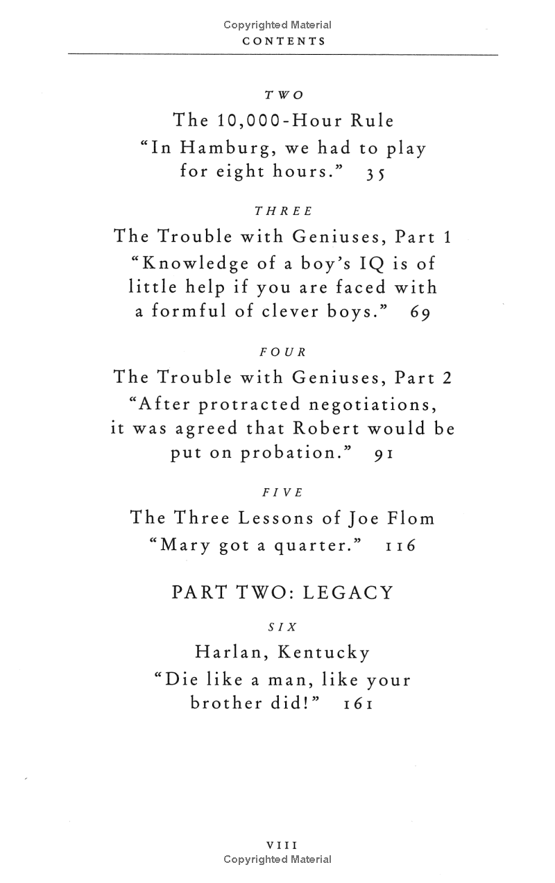 He reveals that we pay far too much attention to what successful people are like, and too little attention to where successful people are from: their culture, their family, and their generation. Gladwell examines how the careers of Bill Gates and the performance of world-class football players are alike; what top fighter pilots and The Beatles have in common; why so many top lawyers are Jewish; why Asians are good at maths; and why it is correct to say that the mathematician who solved Fermat's Theorem is not a genius.