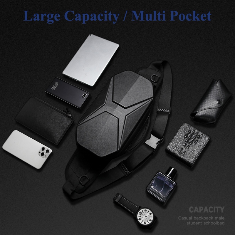 ✨Ozuko Nam Túi Ngực Vỏ Cứng Túi Thắt Lưng Thời Trang Thể Thao Ngoài Trời Thắt Lưng Túi Dành Cho Thanh Thiếu Niên Túi Đeo Vai Chống Thấm Nước Sạc USB Nam