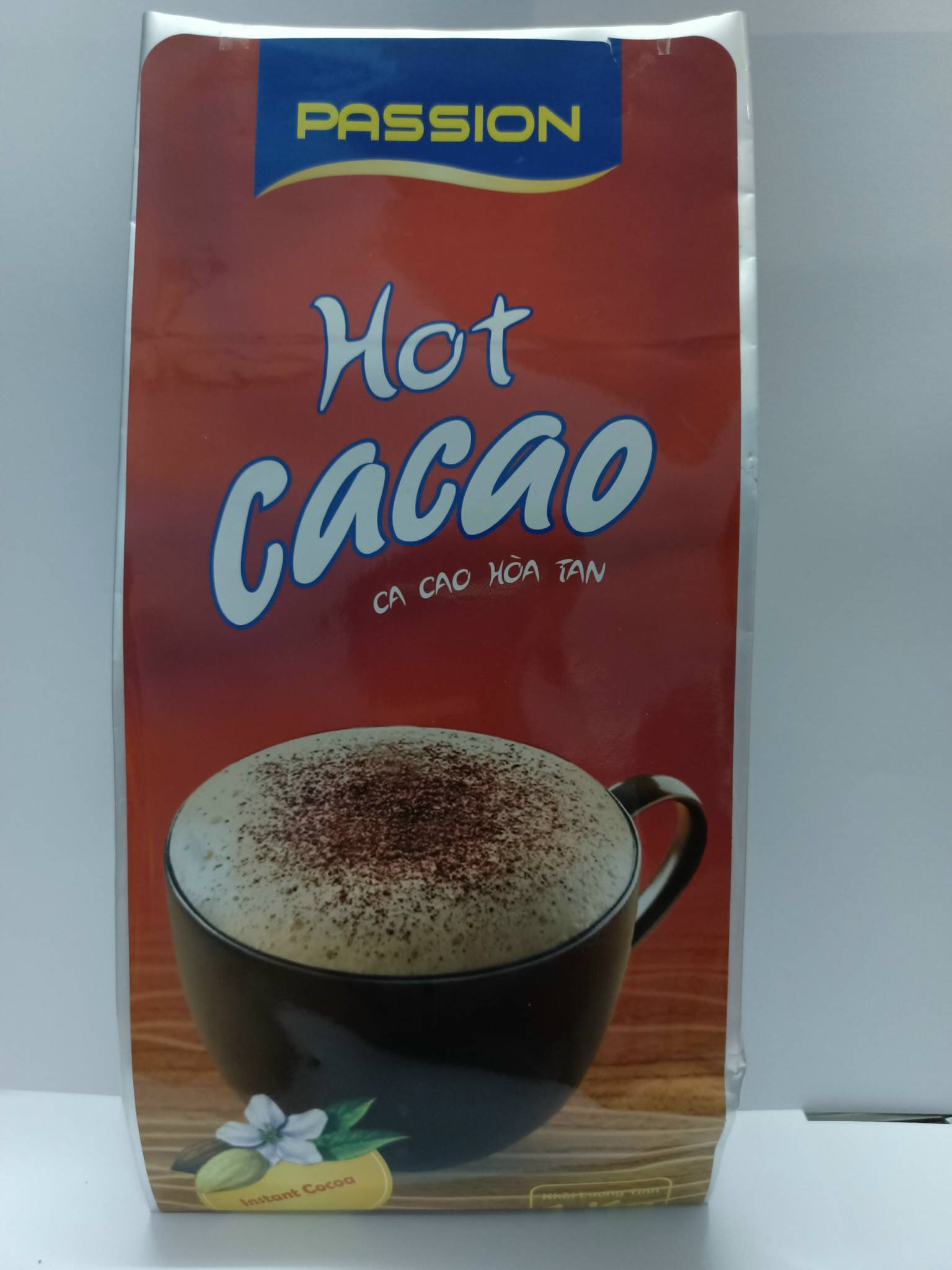 - Hướng dẫn sử dụng: Đổ một gói ca cao hiệu Passion Hot Cacao vào ly. Thêm 50 ml nước nóng và khuấy nhẹ cho đến khi tan hoàn toàn. Để một lúc cho bọt nổi lên rồi thưởng thức hương vị thơm ngon của ca cao hiệu Passion Hot Cacao.