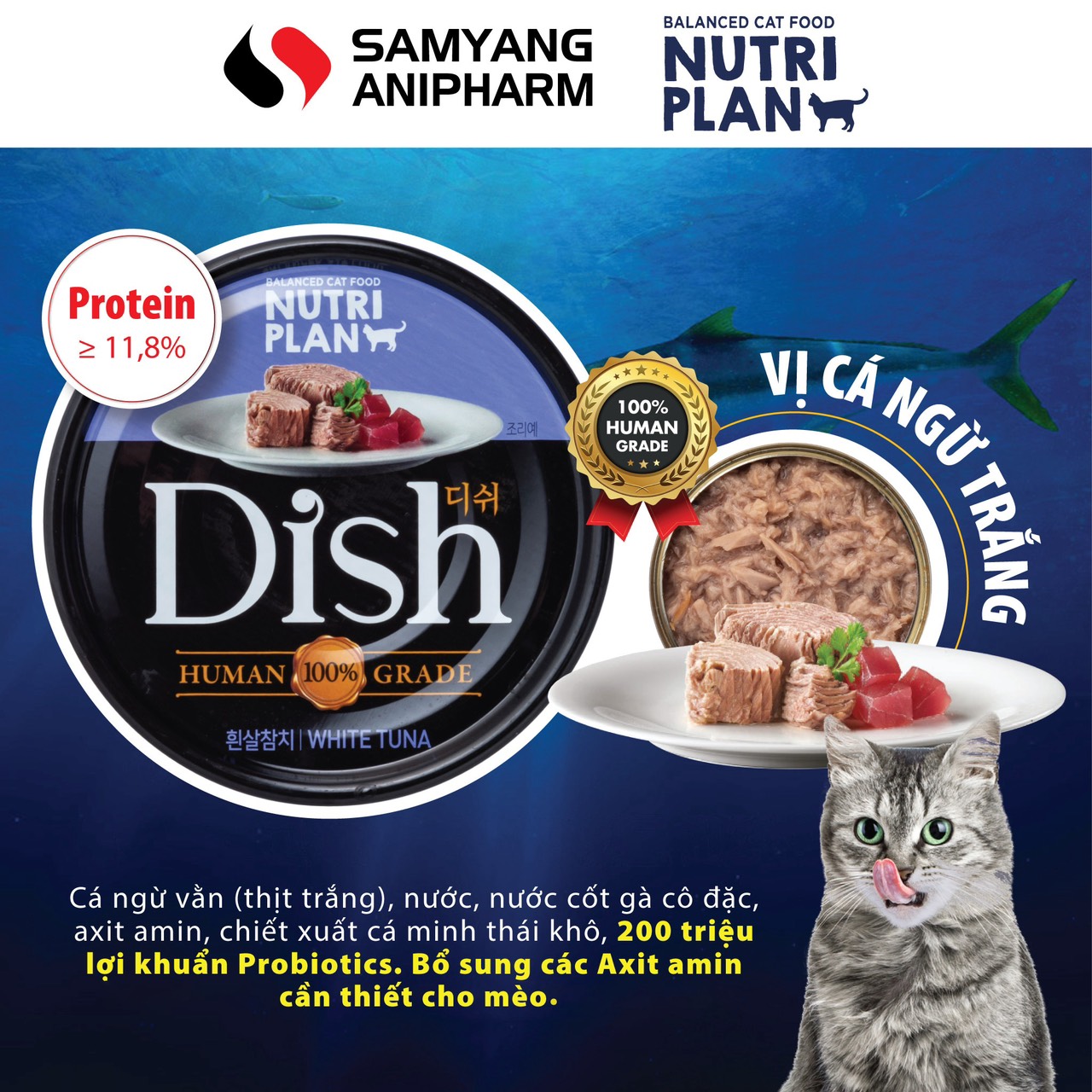 85gr - Pate Dongwon Dish cho Mèo lớn Mèo con thịt nguyên miếng thơm ngon nhập Hàn Quốc thành phần Cá Gà Sản xuất tại: Dongwon, 68 Mabang-ro, Seocho-gu, Seoul, Hàn Quốc Quy cách: 85g Pate cho mèo Dish là loại thức ăn dành riêng cho mèo, được sử dụng thành phần chính là cá & gà. Đây là loại thức ăn giàu protein, Taurine, axit amin và các khoáng chất khác rất tốt cho mèo. Đặc điểm sản phẩm Nguyên liệu chủ yếu là cá ngừ cá trắng thịt gà tươi ngon, tốt cho sức khỏe. Bổ sung các Axit amin cần thiết cho mèo như Taurine và Arginine. Bổ sung Probiotics (các vi khuẩn có lợi), hỗ trợ hệ tiêu hóa, nhuận tràng. Không sử dụng chất bảo quản, chất tạo vị, chất tạo đông. Thành phần dinh dưỡng Protein ≥ 11,8% Tro ≤ 1,3% Chất béo ≥ 0,15% Độ ẩm ≤ 98% Chất xơ thô ≤ 0,3% Các hương vị hiện có: 1. Dish White Tuna: vị Cá ngừ trắng Nguyên liệu: Cá ngừ vằn (thịt trắng), nước, nước cốt gà cô đặc, axit amin, chiết xuất cá minh thái khô, Probiotics. 2. Dish White Tuna & Salmon: vị Cá ngừ trắng & Cá hồi Nguyên liệu: Cá ngừ vằn (thịt trắng), nước, cá hồi, nước cốt gà cô đặc, axit amin, chiết xuất cá minh thái khô, Probiotics. 3. Dish White Tuna & Chicken: Cá ngừ trắng & Thịt gà Nguyên liệu: Cá ngừ vằn (thịt trắng), nước, ức gà, nước cốt gà cô đặc, axit amin, chiết xuất cá minh thái khô, Probiotics.