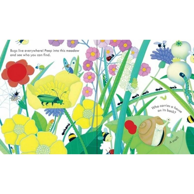 Peep Inside Bug Homes Come on a bug hunt in this little book and discover ants building their nest underground, bees making honey in their hive and a bug hotel where lots of creepy crawlies