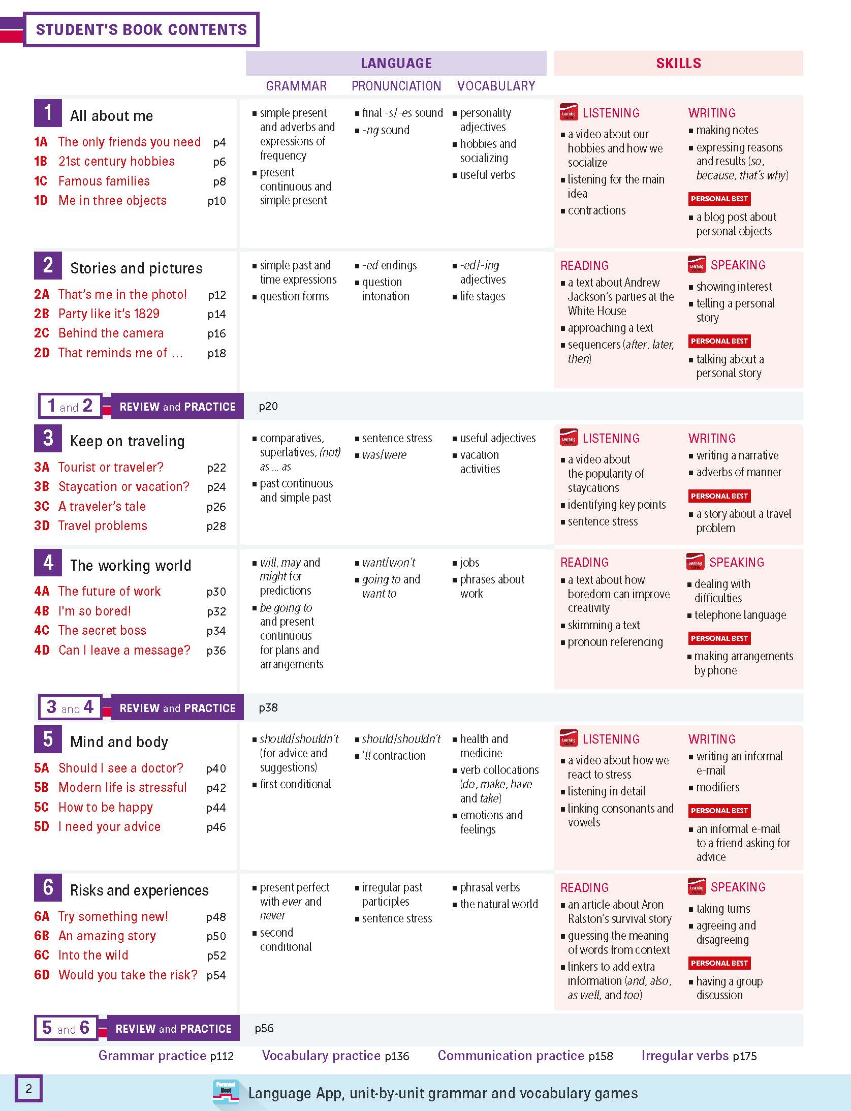 Personal Best là khóa học tiếng Anh tổng quát 6 cấp độ dành cho những học viên muốn tối đa hóa kinh nghiệm học tiếng Anh của bản thân. Được phát triển bởi Series Editor Jim Scrivener- giảng viên đào tạo giáo viên và diễn giả nổi tiếng quốc tế, sách tập trung vào thực hành làm động lực cải thiện tiếng Anh cho học viên và chương trình học thế kỷ 21 tích hợp cùng video trên Web và Ứng dụng Personal Best Language. Hai quan điểm nổi bật của Personal Best: Tính cá nhân: Khóa học tập trung vào việc cá nhân hóa cho học viên ở các tiến độ khác nhau, có ưu và khuyết điểm khác nhau. Giúp người học đạt được mục tiêu của mình: Để giúp học viên tối ưu hóa tiềm năng của bản thân, sách tập trung vào vai trò quan trọng của việc THỰC HÀNH. Khóa học đảm bảo học viên thực sự có thể sử dụng ngôn ngữ đã học vào trong thực tiễn. SÁCH CÓ KÈM CODE