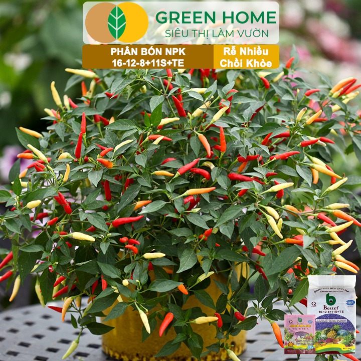 ✨Phân bón NPK 16-12-8-11S+TE Greenhome, Better, Bao 1kg, Phát Triển Nhanh Thân, Cành, Lá, Bộ Rễ