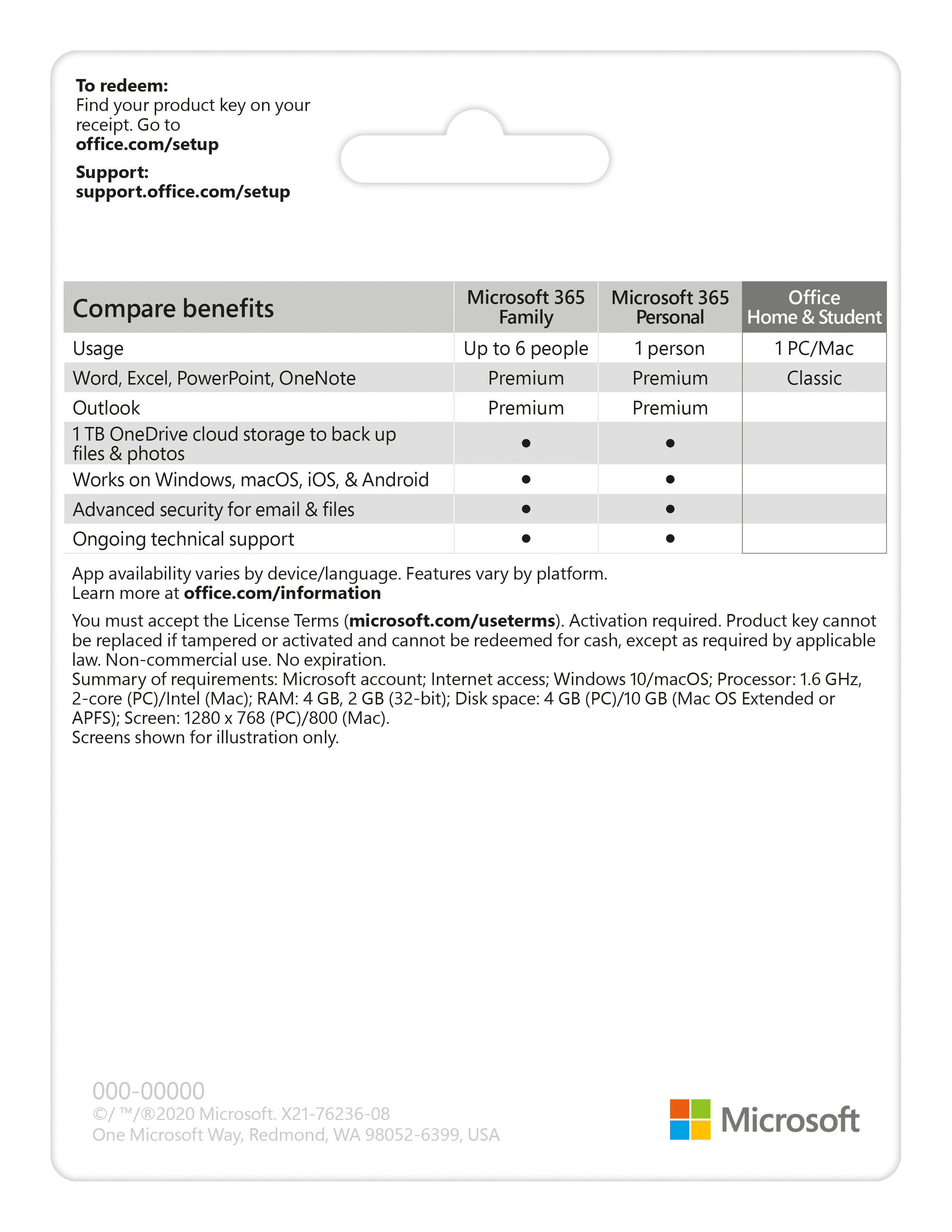 - Hệ điều hành macOS: phần mềm hỗ trợ trên 3 phiên bản macOS mới nhất. Khi phiên bản chính, mới nhất của macOS được công bố rộng rãi, Microsoft sẽ ngừng hỗ trợ phiên bản cũ nhất, đồng thời, hỗ trợ phiên bản mới nhất cùng với 2 phiên bản trước đó của macOS. Các tính năng nổi bật Các ứng dụng cần thiết được tích hợp giúp các tác vụ văn phòng được thực hiện một cách hiệu quả và tiện lợi: Tương tự phiên bản Office Home & Student 2019, phiên bản Office Home & Student 2021 cũng cung cấp các ứng dụng quen thuộc như Word, Excel, Powerpoint và cả ứng dụng OneNote. Ở phiên bản này, người dùng có thể tùy chỉnh giao diện tối theo sở thích, bên cạnh đó nhiều tính năng và phông chữ được cài đặt thêm, tối ưu nhu cầu cho bạn. Hoạt động ổn định: Nhằm đảm bảo việc trải nghiệm hiệu quả, an toàn, giảm tối đa nguy cơ bị hacker tấn công, đánh cắp các thông tin quan trọng, Office Home & Student 2021 thường xuyên cập nhật các bản vá lỗi, tăng cường bảo mật. Cung cấp đa dạng ngôn ngữ: Sản phẩm hỗ trợ đầy đủ các ngôn ngữ thông dụng trên thế giới, bạn có thể chọn ngôn ngữ tiếng Việt, tiếng Anh, tiếng Pháp hay bất kỳ ngôn ngữ nào quen thuộc với mình để việc sử dụng thêm tiện lợi, đơn giản. Yêu cầu PC: Tài khoản Microsoft • Khả năng truy cập Internet • Windows 10 • 1,6 GHz, bộ xử lý 2 lõi • RAM 4 GB, 2 GB (32bit) • Dung lượng ổ đĩa còn trống 4 GB • Độ phân giải màn hình 1280 × 768. Mac: Tài khoản Microsoft • Khả năng truy cập Internet • Bộ xử lý Intel • RAM 4 GB • Dung lượng ổ đĩa còn trống 10 GB • Mac OS Extended hoặc APFS • Độ phân giải màn hình 1280 × 800.