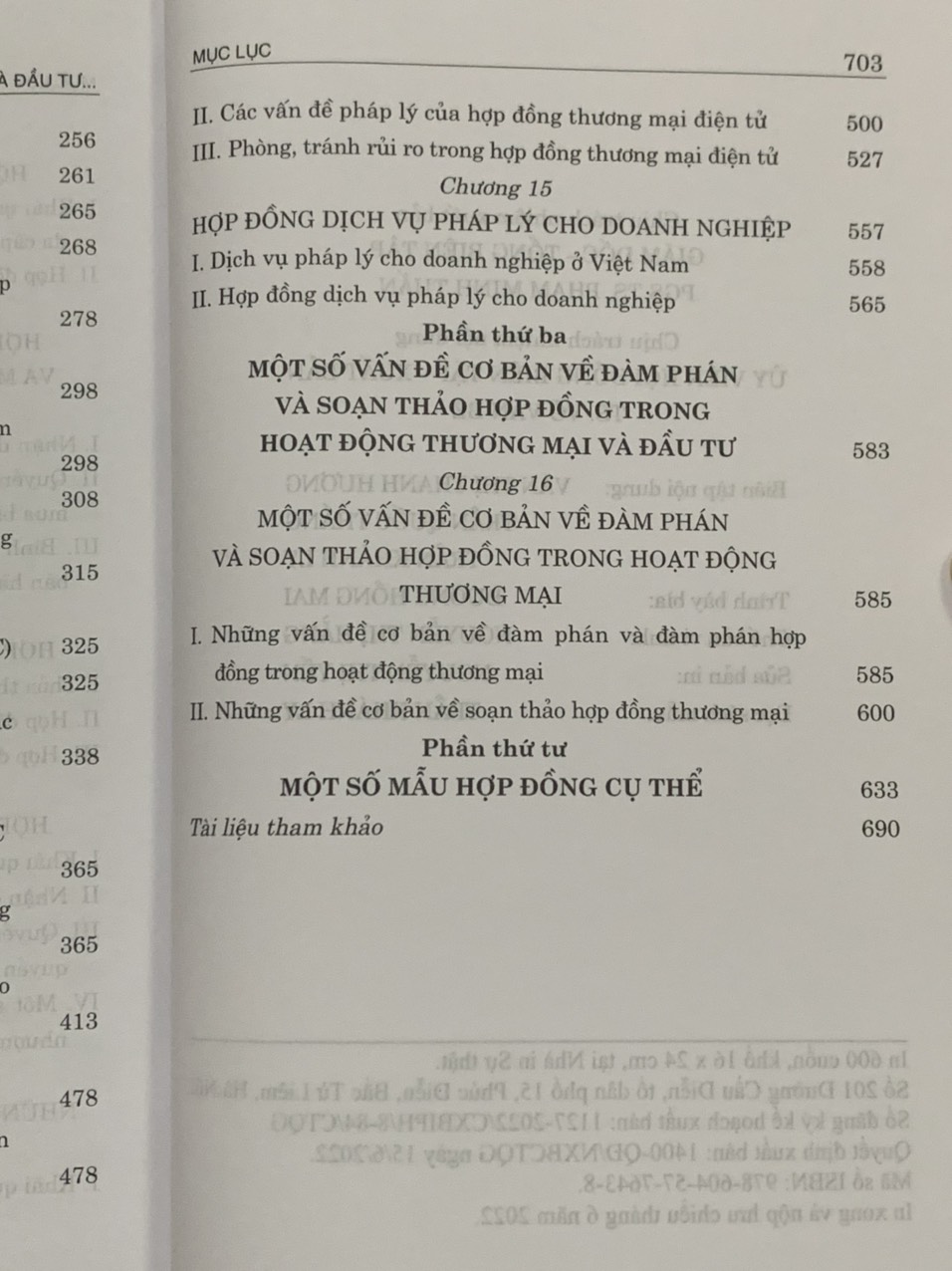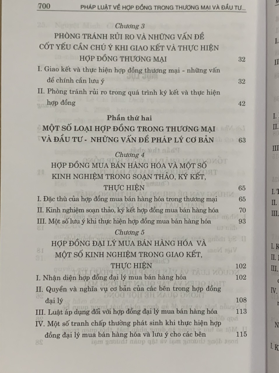 Trong lần xuất bản này, cuốn sách được các tác giả chỉnh sửa và cập nhật các quy định liên quan đến chế định hợp đồng của Luật Thương mại năm 2005, sửa đổi, bổ sung năm 2017, 2019; Luật Doanh nghiệp năm 2020, sửa đổi, bổ sung năm 2022; Luật Đầu tư năm 2020, sửa đổi, bổ sung năm 2022; Luật Đầu tư theo phương thức đối tác công tư năm 2020, sửa đổi, bổ sung năm 2022; Bộ luật Dân sự năm 2015… cùng các văn bản hướng dẫn thi hành. Cuốn sách cung cấp cho bạn đọc những kiến thức chuyên sâu, cụ thế về các loại hợp đồng cơ bản trong hoạt động thương mại và đầu tư tại nước ta. Ngoài ra, cuốn sách cũng giới thiệu những kỹ năng cơ bản khi soạn thảo, ký kết hợp đồng cùng các mẫu hợp đồng phổ biến trong hoạt động thương mại và đầu tư, giúp các bên trong hợp đồng phòng, tránh được những rủi ro pháp lý, giảm thiểu các tranh chấp trong hoạt động kinh doanh.