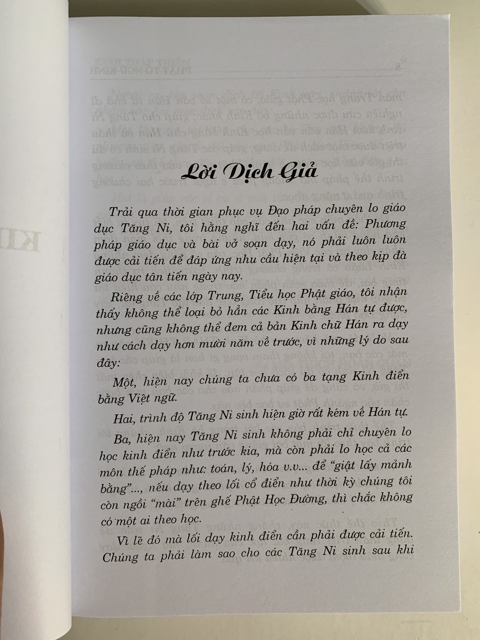 Riêng về các lớp trung tiểu học Phật giáo, tôi nhận thấy không thể loại bỏ hẳn các thứ kinh bằng Hán tự được, nhưng cũng không thể đem cả bản kinh chữ Hán ra dạy như cách dạy hơn mười năm về trước, vì những lý do sau đây: