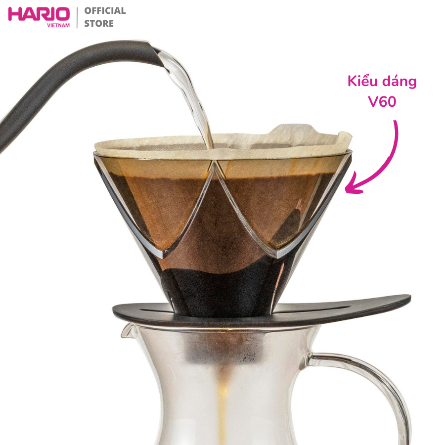 • Vẫn giữ "vóc dáng" V60 lừng danh, nhưng những rãnh hình xoắn ốc mặt trong phễu V60 được thay bằng hình dạng ngôi sao 4 cánh. Thiết kế được canh chỉnh một cách tinh tế này giúp cho quá trình chiết xuất cà phê diễn ra chậm hơn, mang lại hương vị tuyệt vời.