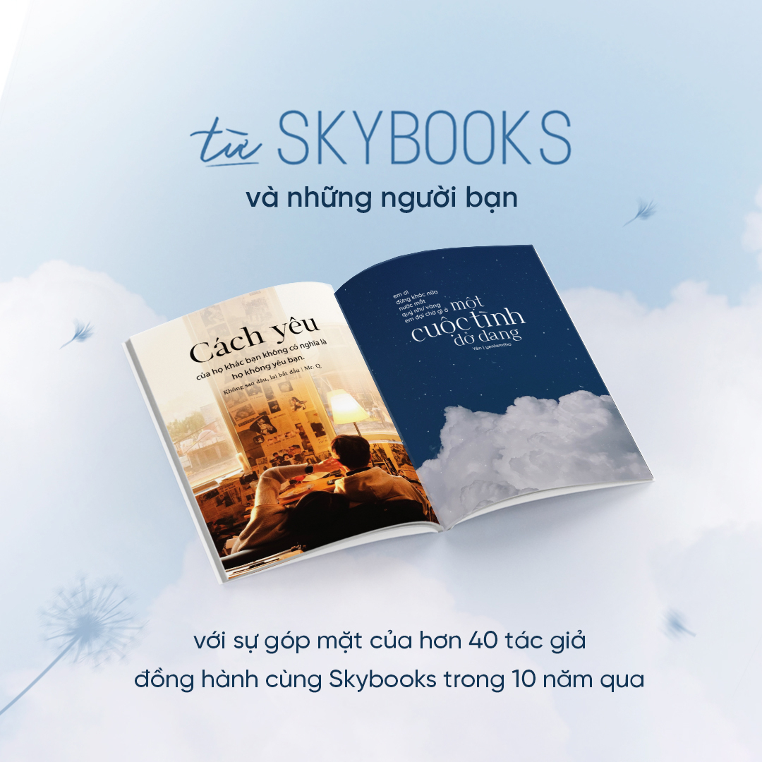 Để kỷ niệm hành trình 10 năm đầy thăng hoa này, chúng mình cho ra mắt cuốn sách “Phía trước là bầu trời” - một ấn phẩm đặc biệt của Skybooks với sự góp mặt của hơn 40 tác giả đã đồng hành cùng Skybooks trong thập kỷ vừa qua. Cảm ơn đội ngũ tác giả đã cùng Skybooks lan tỏa những giá trị tích cực qua từng trang viết từ ngày đầu thành lập đến nay.