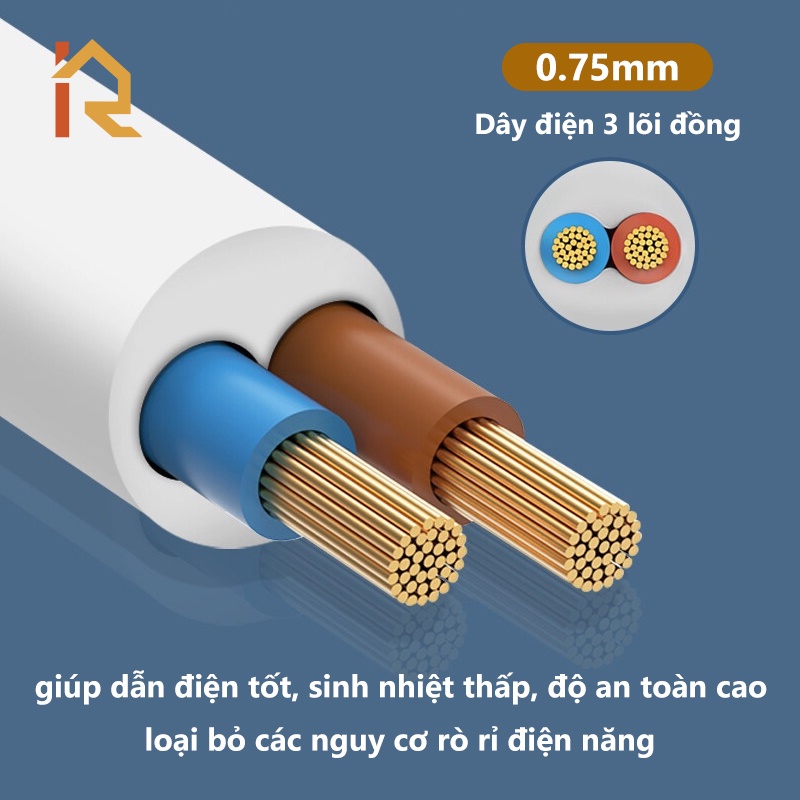 Ổ cắm 3 ổ đa năng + 2 ổ cắm USB cách điện bền đẹp - Chịu nhiệt, chống cháy: 750 độ C - Chiều dài dây điện: 1.8 mét - Chân tiếp xúc với