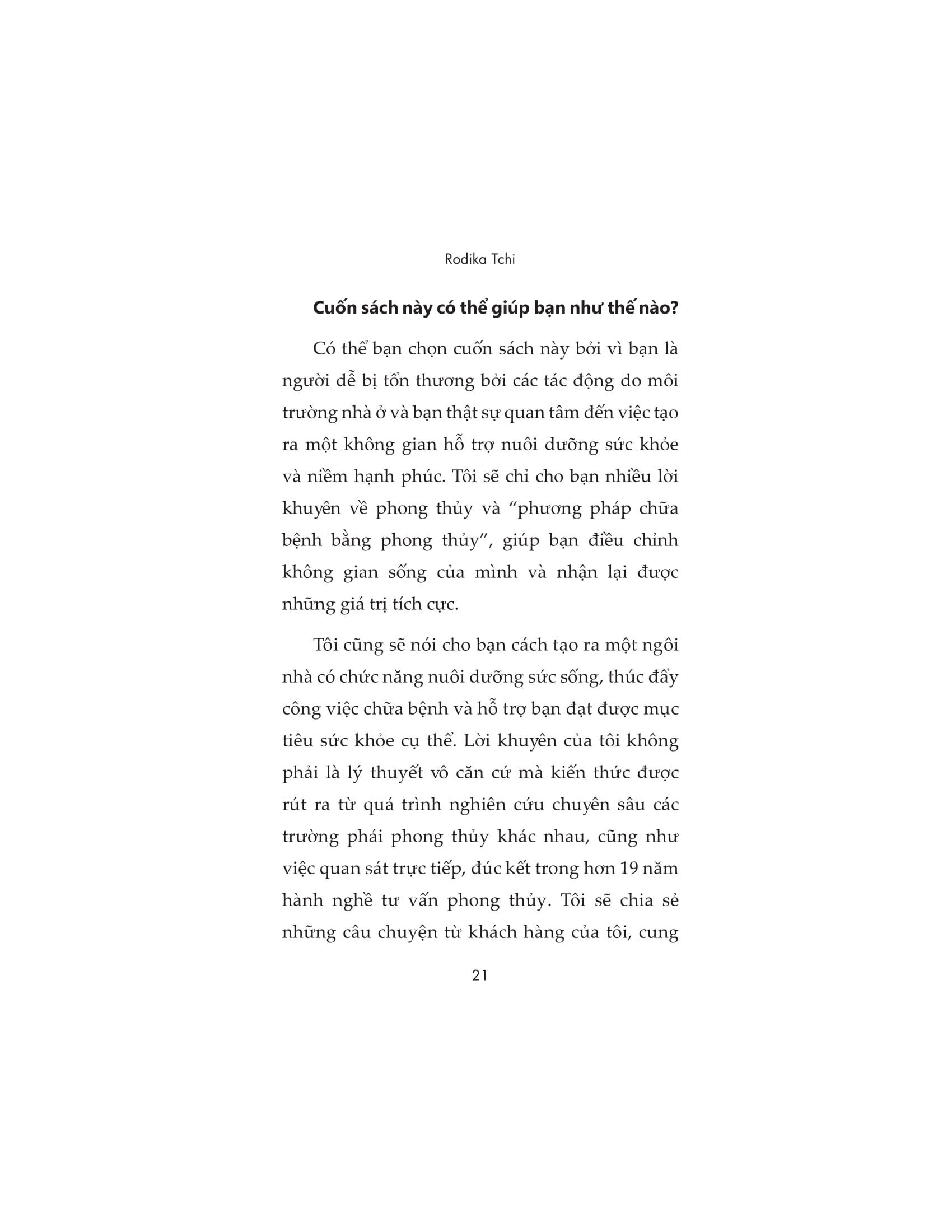 Cuốn sách này sẽ cung cấp cách giải thích hiện đại về trí tuệ cổ xưa, được trình bày với những lời khuyên và hướng dẫn cách sử dụng không gian để nuôi dưỡng sức sống trong bạn.