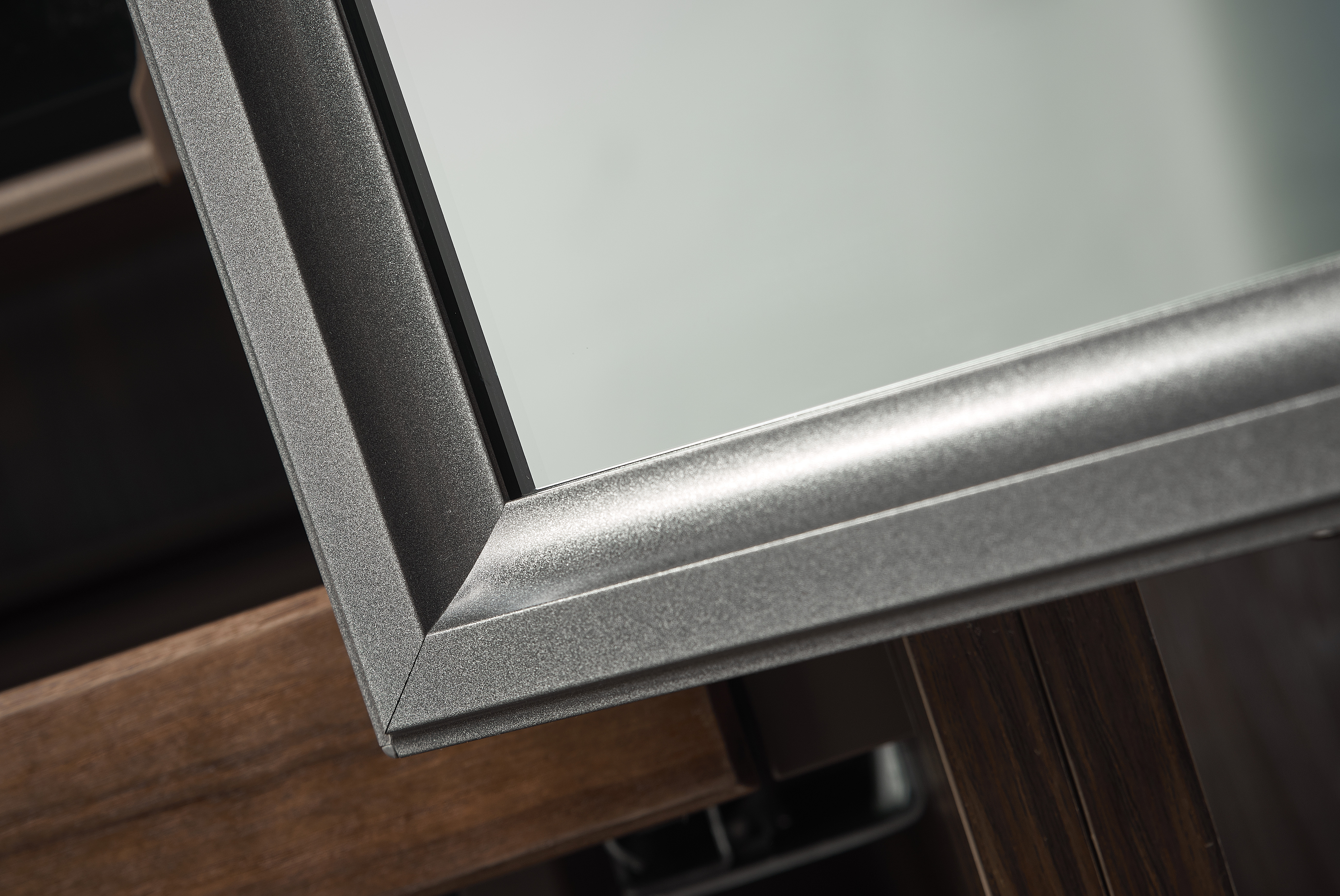 Khung gương được làm từ chất liệu hợp kim nhôm cao cấp và được phủ một lớp sơn tĩnh điện bảo vệ gương khỏi các hiện tượng ăn mòn, gỉ sét, chống xước tốt.