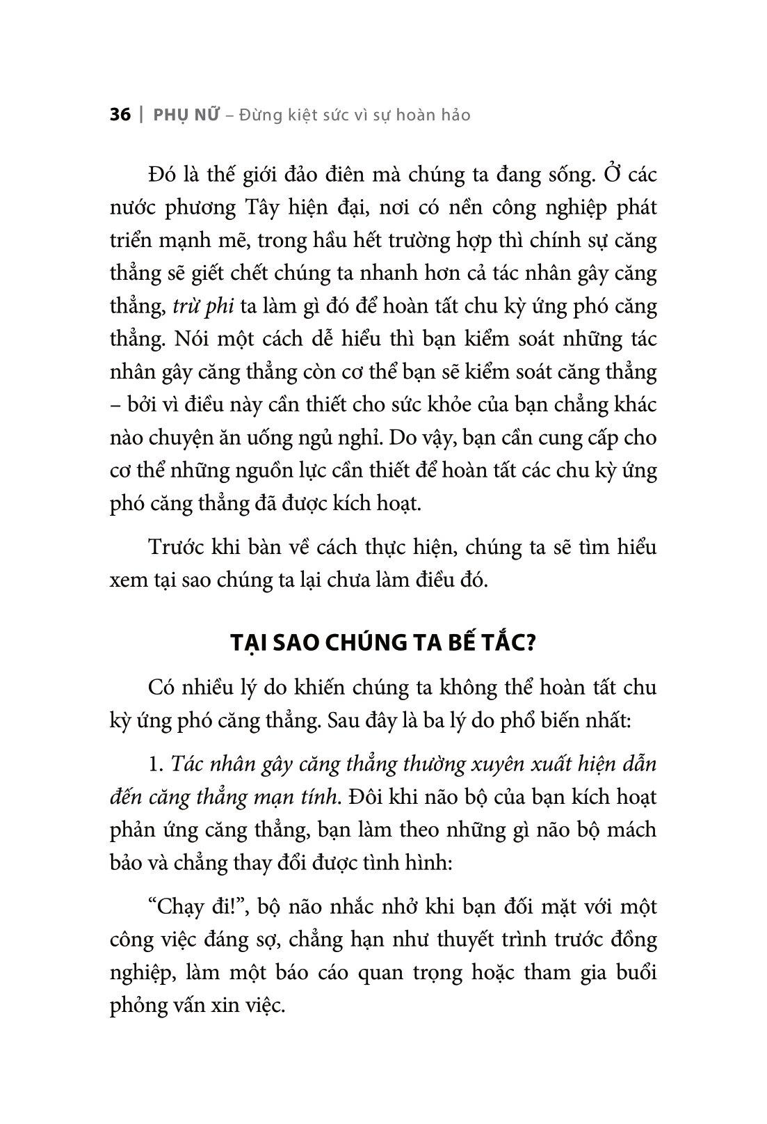 Cuốn sách “Phụ nữ - Đừng kiệt sức vì sự hoàn hảo” được chia làm 3 phần:
