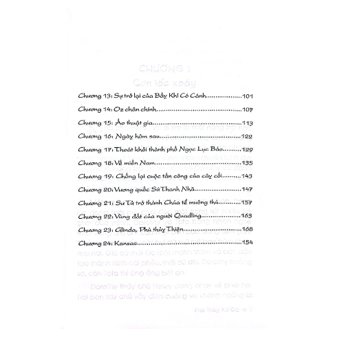 Phù thủy xứ OZ (ĐT) I. Giới Thiệu Sách Phù Thủy Xứ Oz Cùng Dorothy bước vào thế giới kỳ ảo của xứ OZ! Bạn đã từng mơ được bước vào một thế giới đầy phép màu, nơi những ngôi nhà có thể bay theo lốc xoáy, nơi sư tử biết nói, người rơm muốn có bộ óc, và người thiếc chỉ ước có trái tim? “Phù thủy xứ Oz” – tác phẩm kinh điển của L. Frank Baum – không chỉ là một câu chuyện thiếu nhi. Đó là hành trình trưởng thành, khám phá lòng dũng cảm, trí tuệ và tình yêu thương – những giá trị vẫn còn nguyên vẹn sức mạnh sau hơn 100 năm ra đời. Cùng cô bé Dorothy và chú chó Toto phiêu lưu qua những vùng đất kỳ lạ, gặp gỡ những người bạn không thể quên, và học cách tin vào chính bản thân mình. Nếu bạn đang tìm kiếm một cuốn sách để: