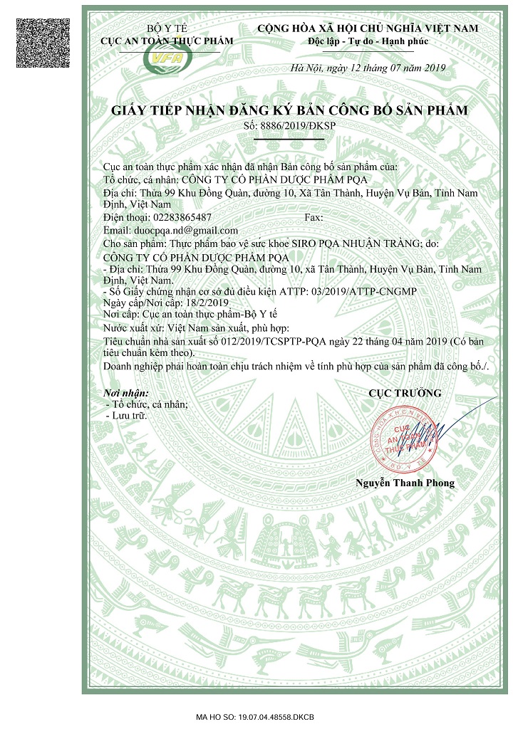 THÔNG TIN PQA NHUẬN TRÀNG DẠNG ỐNG