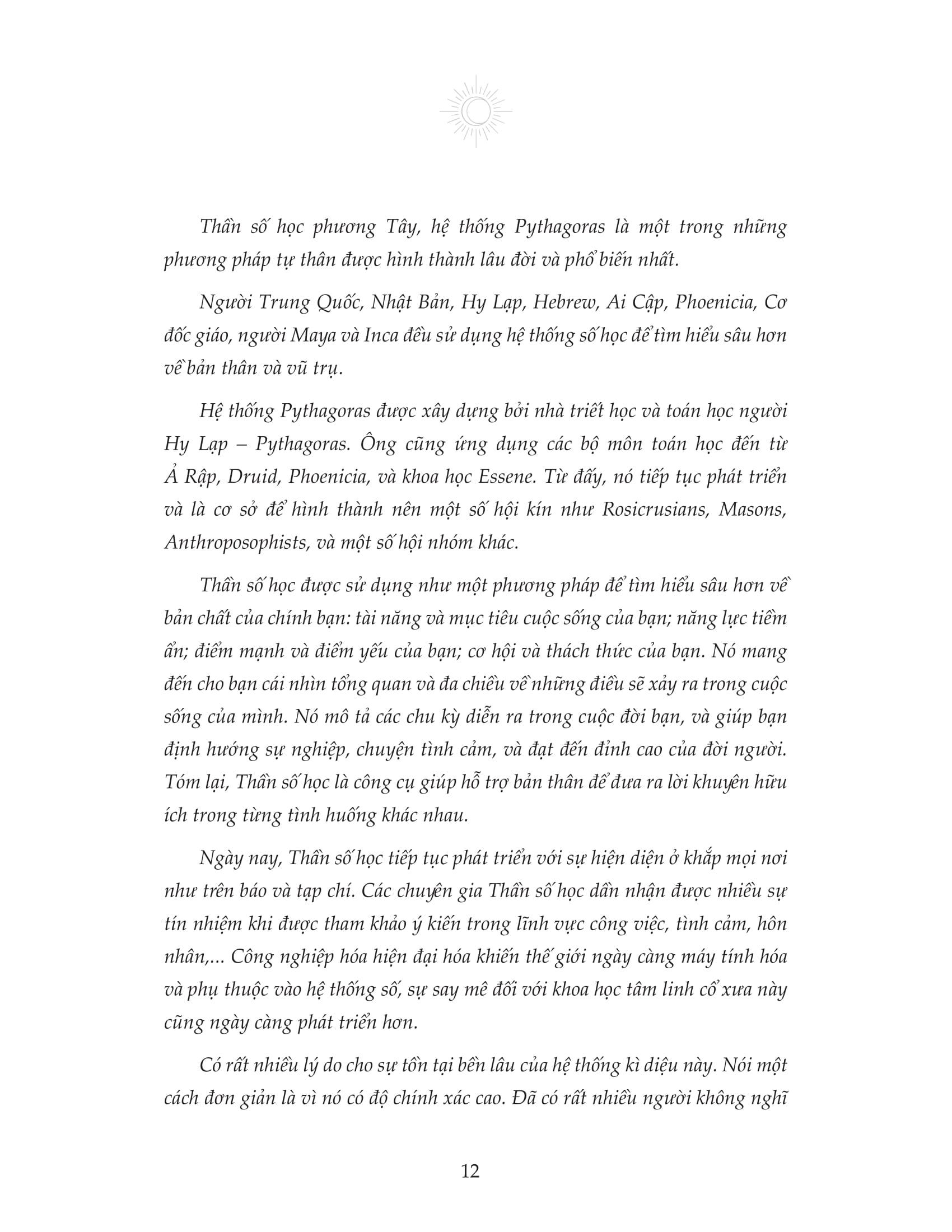 Mật Mã Thần Số Học Đây là công trình khoa học với phương pháp độc đáo dựa trên hệ thống Pythagoras để tiên đoán về vận mệnh và cuộc sống con người; là cuốn sách