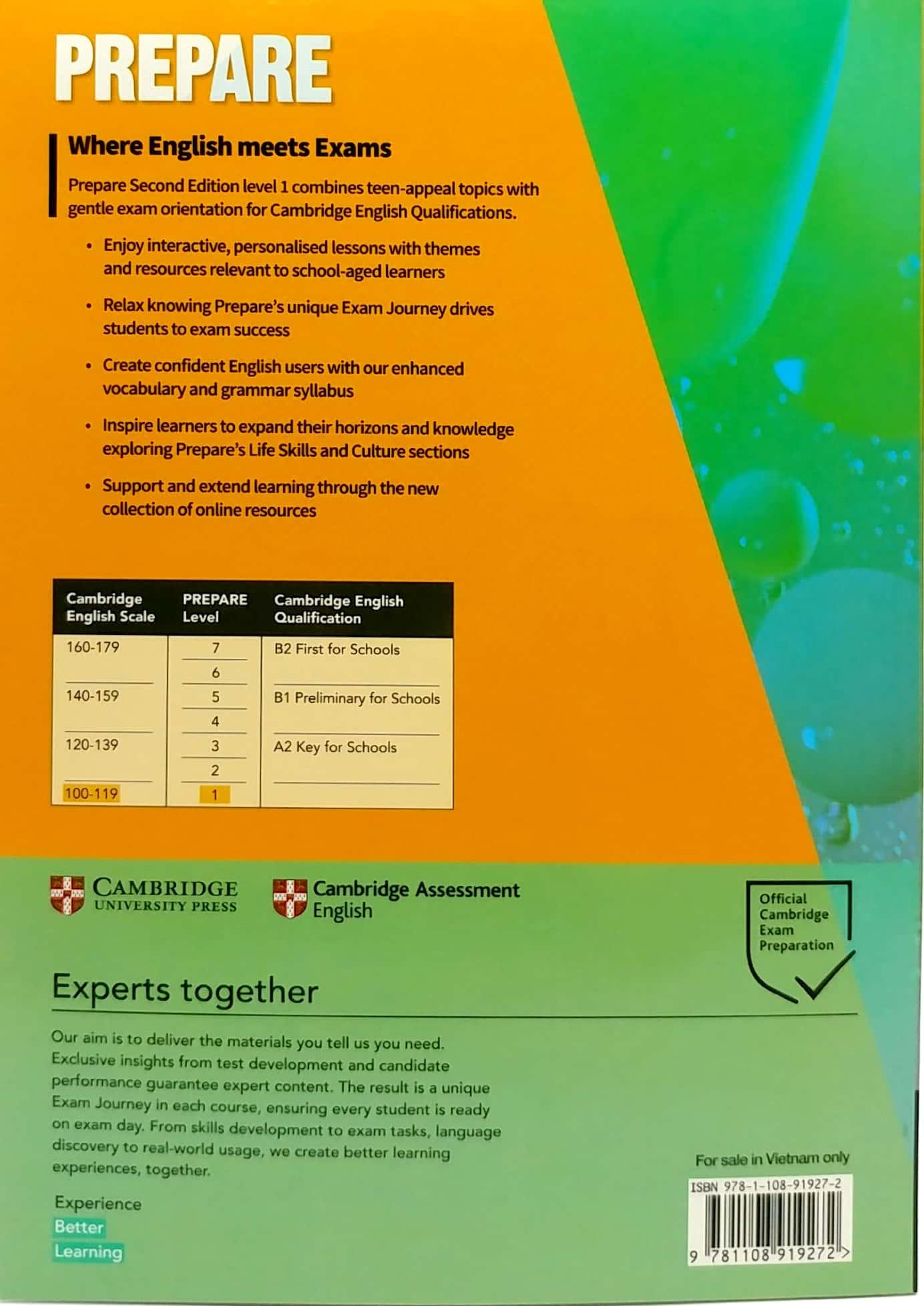 Prepare A1 Level 1 Workbook With Audio Download PREPARE 2nd edition Level 1 provides a foundation for levels 2 and 3 which prepare students for the revised 2020 A2 Key for Schools exam. The Level