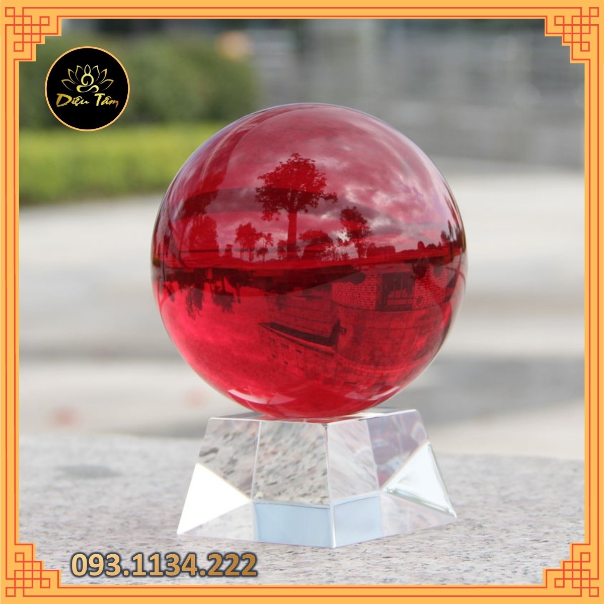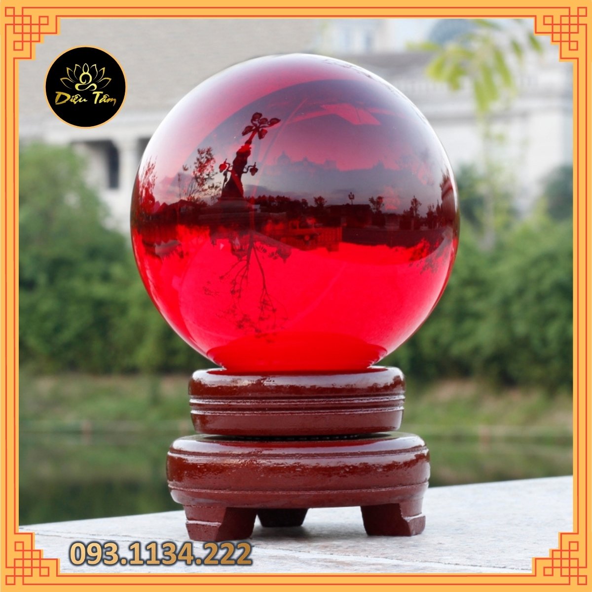Quả cầu phong thủy pha lê màu đỏ size to 15cm hợp mệnh Thổ, mệnh Hỏa đồ phong thủy trang trí