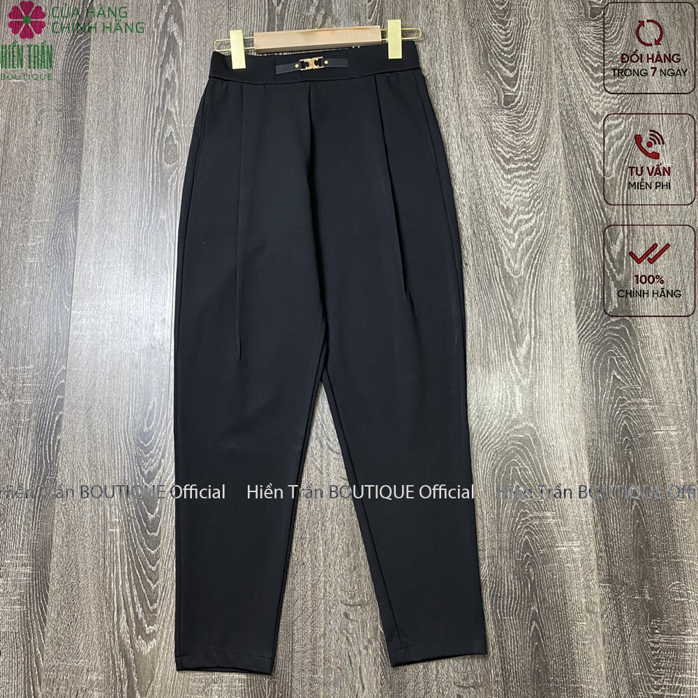 ✨Quần baggy nữ phối khuyên dây da Hiền Trần BOUTIQUE chất liệu Umi co giãn cao cấp