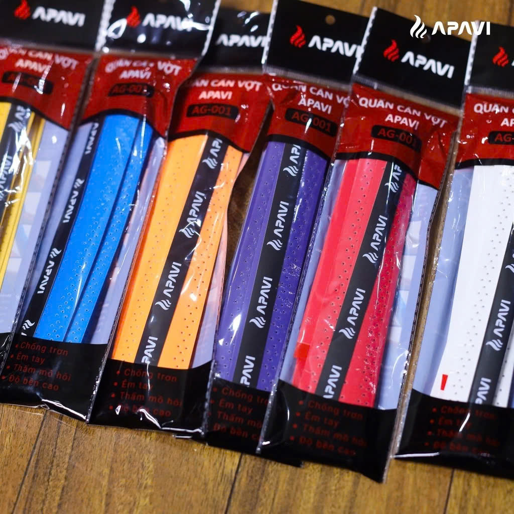 - Dán cố định quấn cán vợt bằng băng keo APAVI
