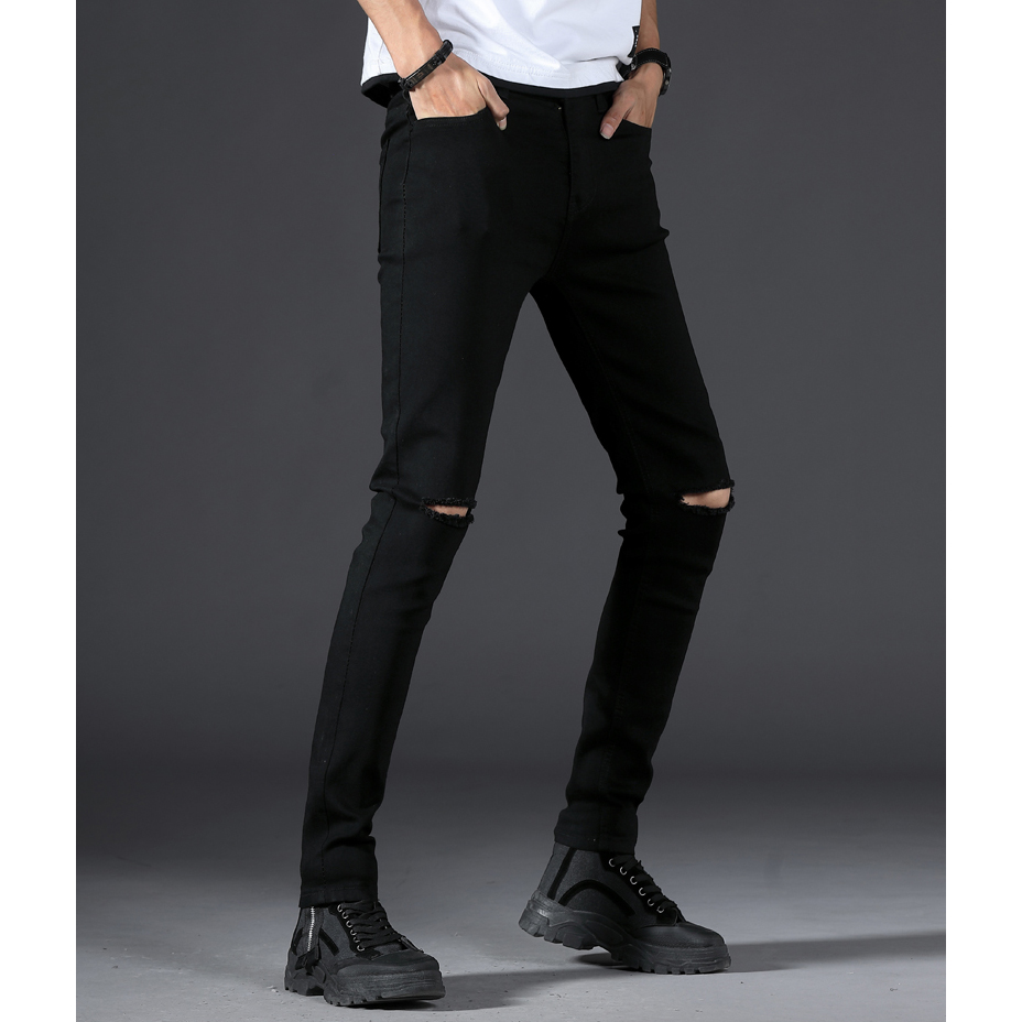 Thiết kế Jean đen rách gối cao cấp phong cách đường may tỉ mỉ. Quần thiết kế form vừa vặn giúp tôn được đường nét phong cách của các tính đồ yêu phong cách đường
