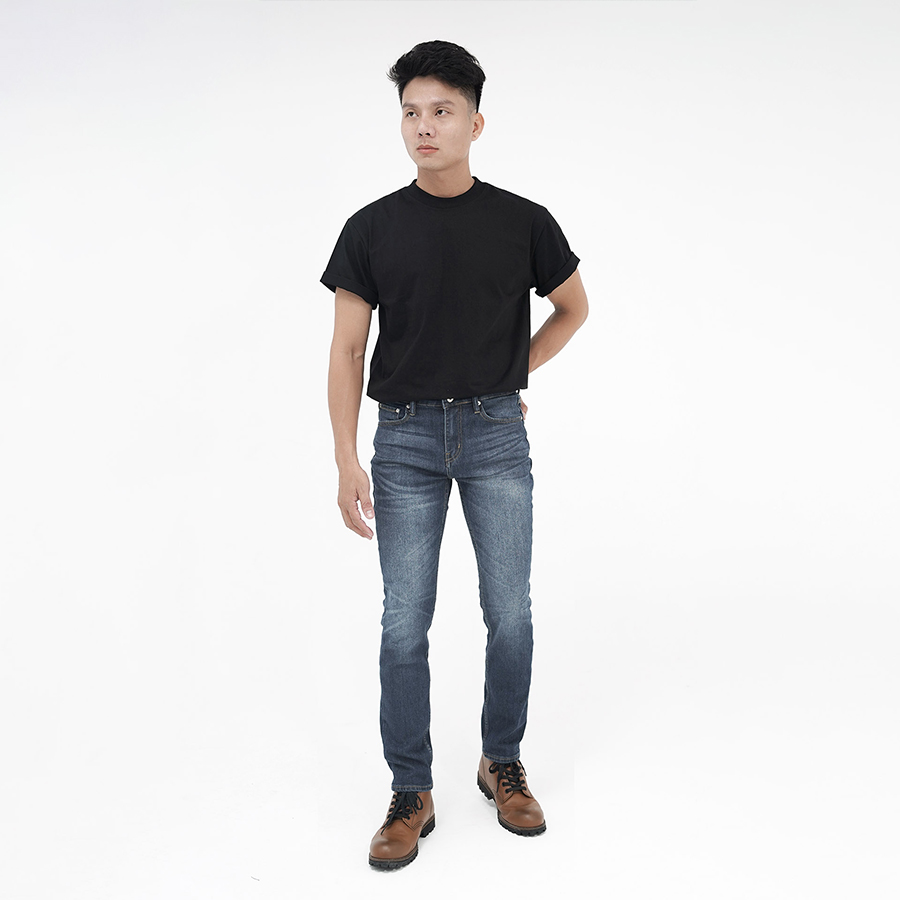 Quần Jean Nam ROUTINE Ống Ôm Xanh Trơn Cotton Spandex Form Slim - 10S24DPA004R1 | ROUTINE CÀ MAU ĐẶC ĐIỂM NỔI BẬT Nhóm sản phẩm Quần Jean Form dáng Slim Giới tính Nam Chất liệu