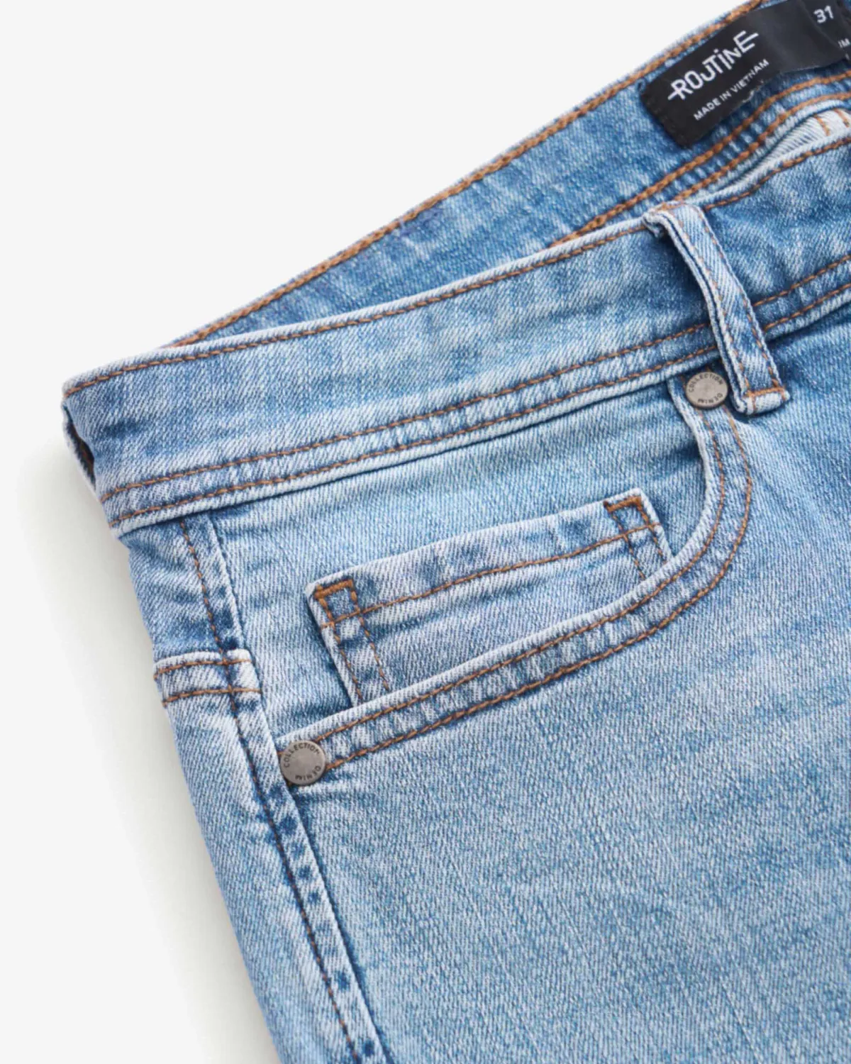 Quần Jean Nam ROUTINE Ống Ôm Xanh Trơn Cotton Spandex Form Slim - 10S24DPA004R1 | ROUTINE CÀ MAU ĐẶC ĐIỂM NỔI BẬT Nhóm sản phẩm Quần Jean Form dáng Slim Giới tính Nam Chất liệu
