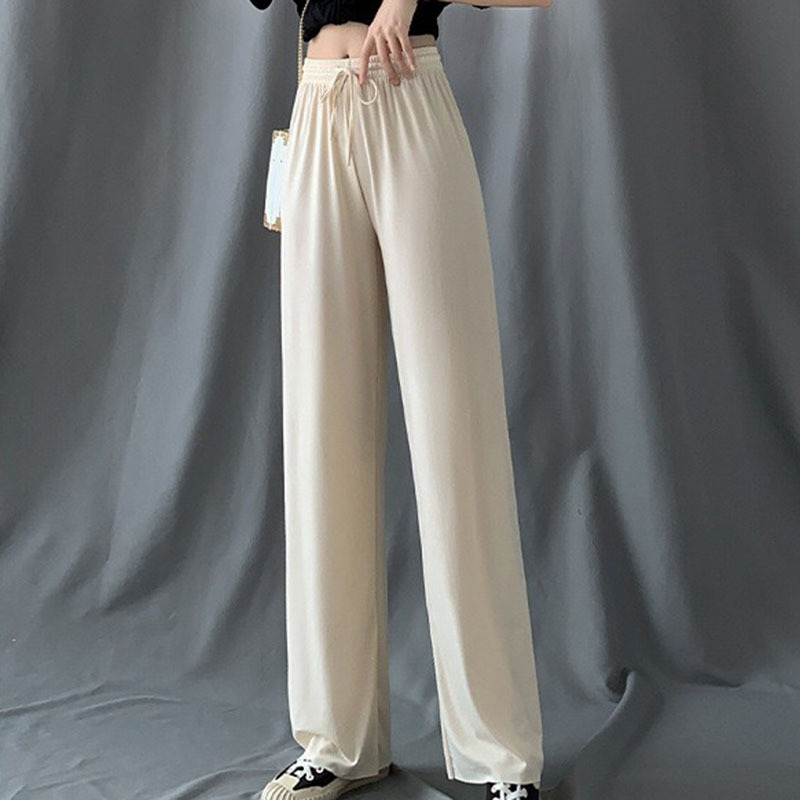 Quần ống rộng Choobe nữ vải gân tăm cạp cao co giãn #lazada