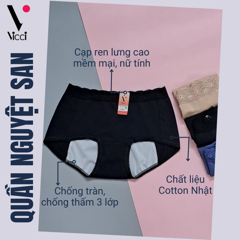 ✨Quần lót nữ chống tràn nguyệt san vải cotton thoáng khí, cạp cao Vicci QV.NS1 mềm mại, kháng khuẩn khử mùi