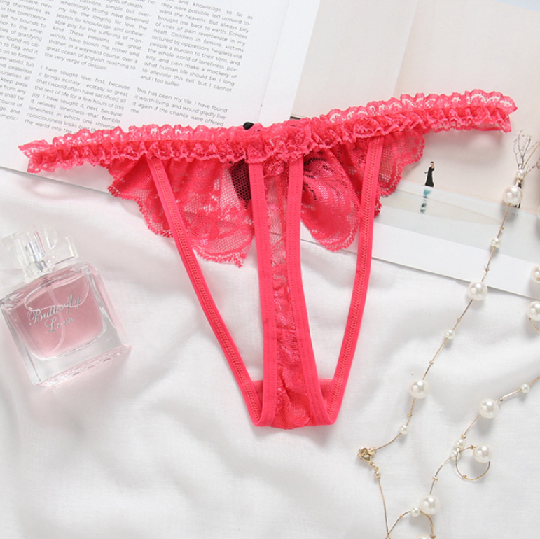 Free Size<55kg 1. Tên sản phẩm: Quần lót lọt khe dành cho nữ 2. Chất liệu: Ren 3. Màu sắc: Nhiều màu tùy chọn 4. Kích thước sản phẩm: Một kích cỡ 5. Phong cách: