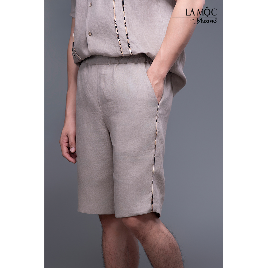 ✨Quần nam linen kem sẫm ngắn viền sườn