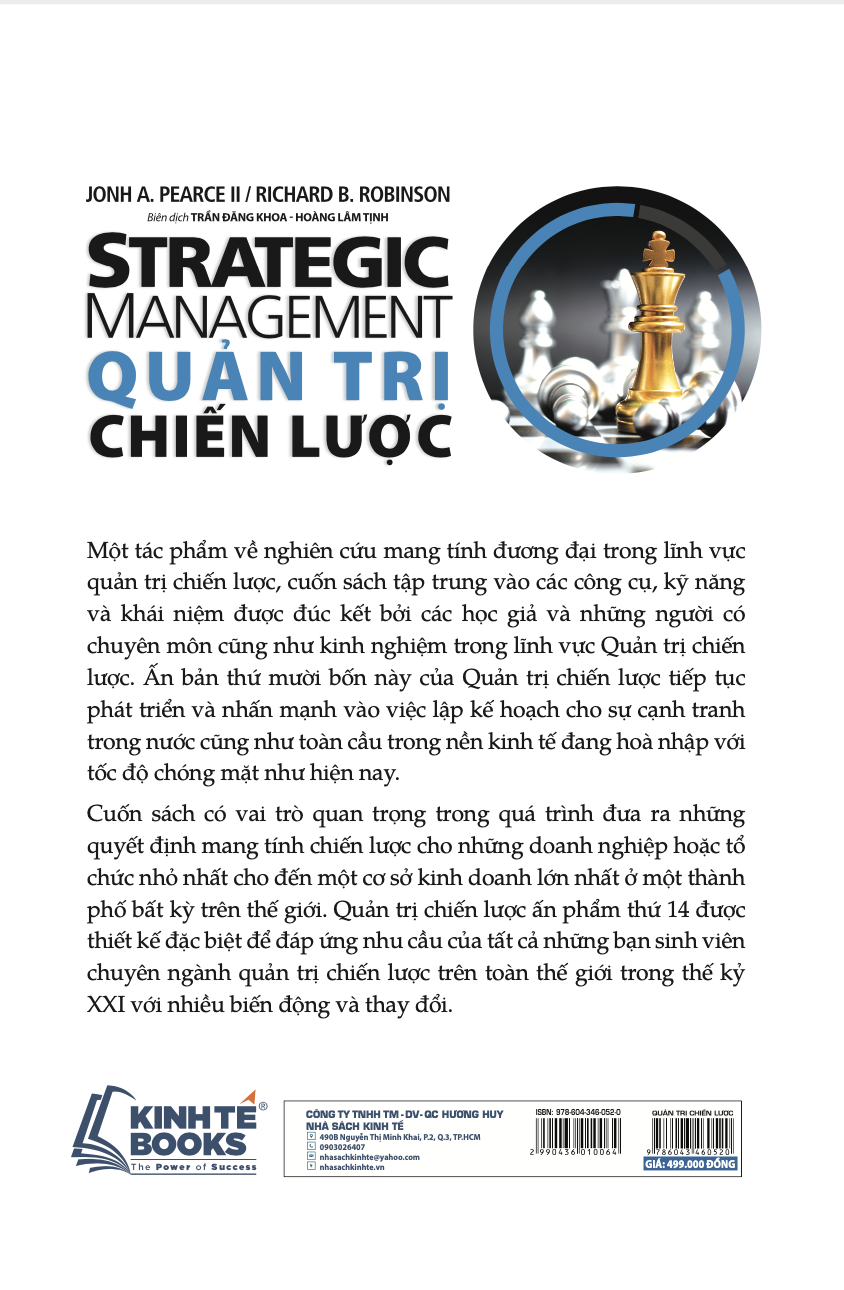 Một tác phẩm về nghiên cứu mang tính đương đại trong lĩnh vực quản trị chiến lược, cuốn sách tập trung vào các công cụ, kỹ năng và khái niệm được đúc kết bởi các học giả và những người có chuyên môn cũng như kinh nghiệm trong lĩnh vực Quản trị chiến lược. Ấn bản thứ mười bốn này của Quản trị chiến lược tiếp tục phát triển và nhấn mạnh vào việc lập kế hoạch cho sự cạnh tranh trong nước cũng như toàn cầu trong nền kinh tế đang hoà nhập với tốc độ chóng mặt như hiện nay.