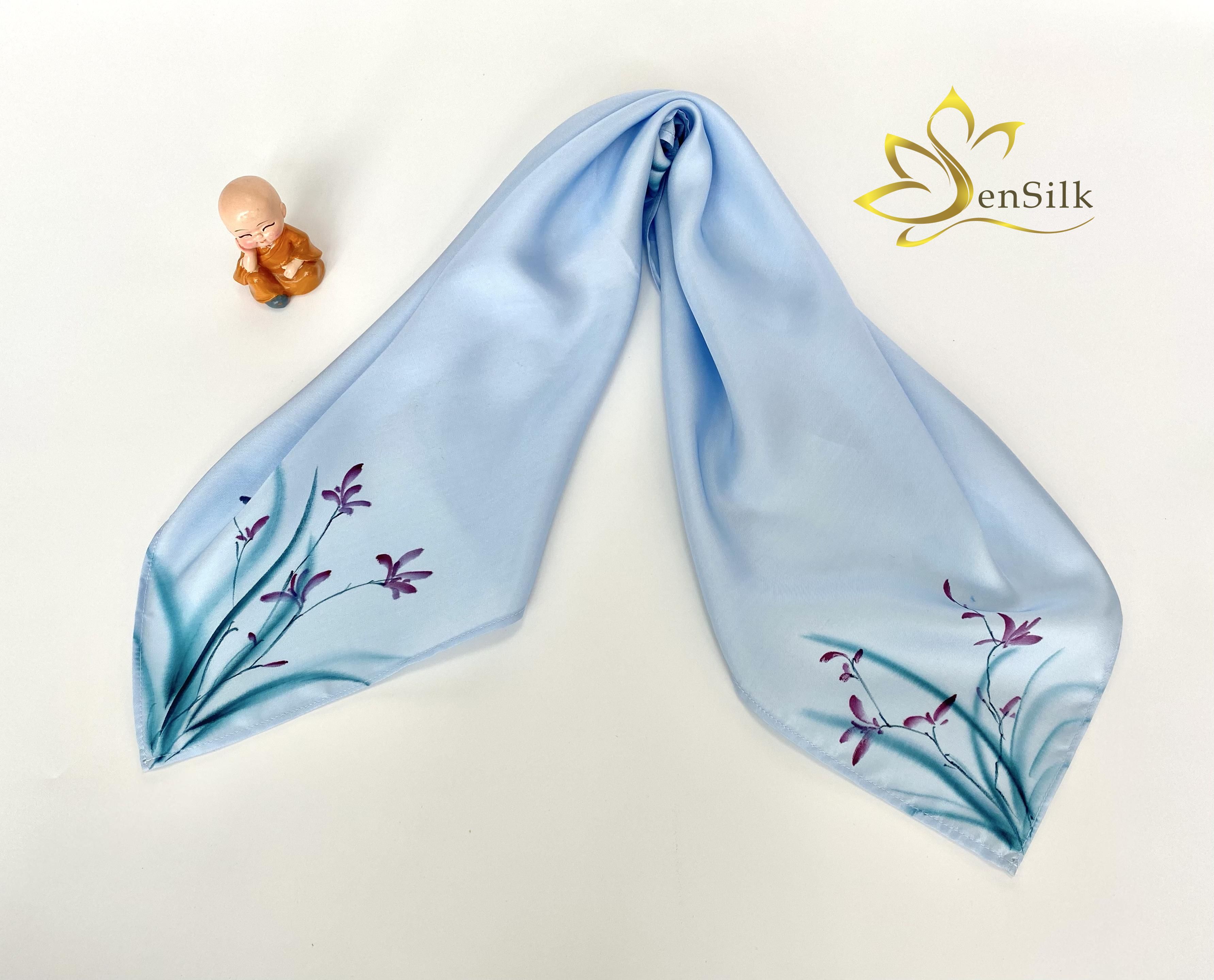 Khăn Lụa Cao Cấp Vẽ Tay Phong Lan Kiếm SenSilk
