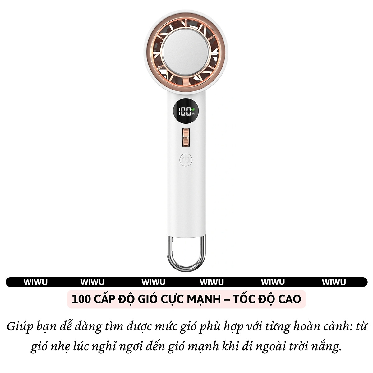[QUẠT MINI SÒ LẠNH] Wi WU Wi-FS016 ChillMate – 100 Cấp Độ Gió, Pin 3000mAh, Gió Mạnh, Làm Mát Nhanh ️ MÁT LẠNH TỨC THÌ – SẠC MỘT LẦN, DÙNG CẢ NGÀY Điểm nổi bật: