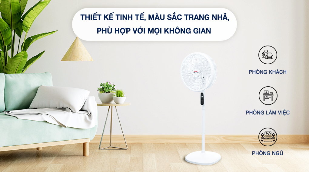 - Gió yên tĩnh: tạo ra luồng gió với tốc độ vừa phải, tiếng gió êm ái < 50 dBA thích hợp sử dụng vào lúc ngủ. Bảng điều khiển Điều khiển bằng nút nhấn trên thân quạt ngoài ra quạt có trang bị thêm remote đi kèm cho phép người dùng dễ dàng tuỳ chỉnh từ xa mà không cần lại gần quạt. Tiện ích Hẹn giờ tắt đến 8 tiếng cho người dùng chủ động thời gian sử dụng quạt.