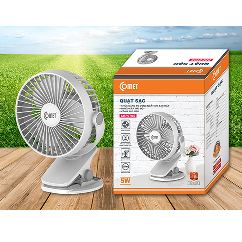 Quạt Sạc Comet CRF0705 có thiết kế nhỏ gọn, đẹp mắt, có thể mang theo mọi lúc mọi nơi. Sản phẩm thích hợp cho nhiều đối tượng sử dụng khác nhau: nhân viên văn phòng, các bạn sinh viên,