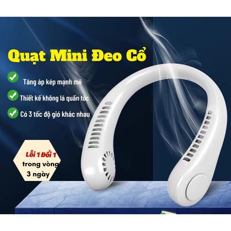 Quạt Mini Quạt Đeo Cổ Thông Minh Tích Điện 3 Cấp Độ Gió Không Cánh - pin dung lượng 4000mAh