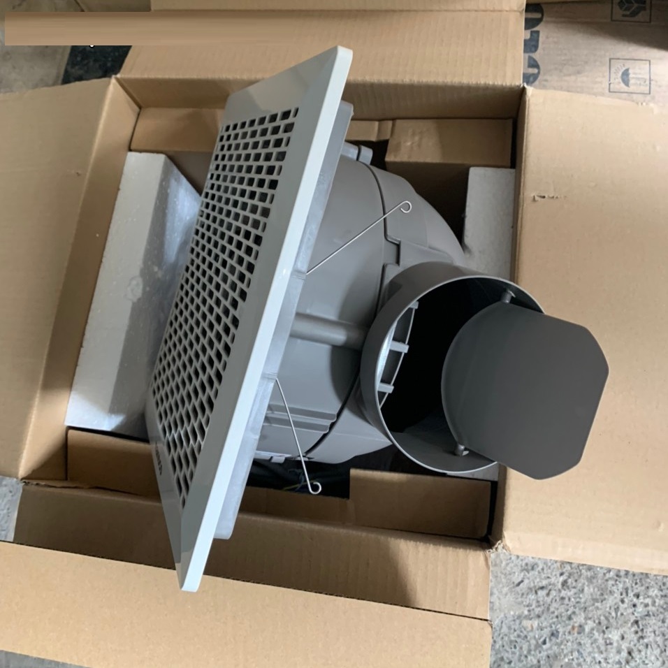 Thông số kỹ thuật Loại Quạt hút kèm miệng gió Kích thước khối (WxHxD) 255x255x105 mm Kích thước lỗ khoét (WxH) 224×224 mm Điện áp 230V AC 50/60Hz Công suất 59 W Lưu lượng gió