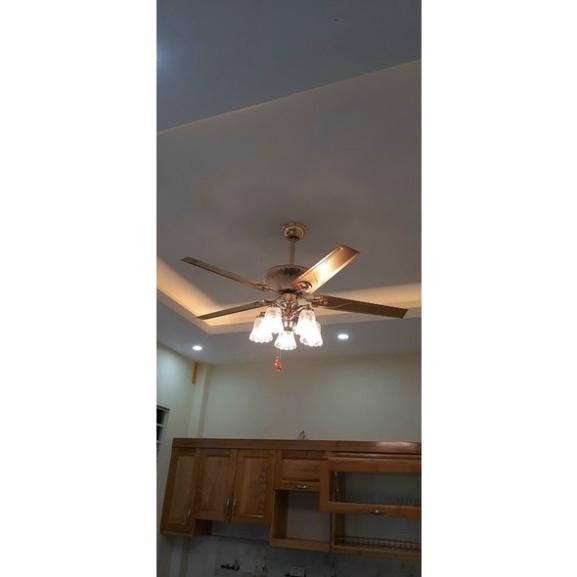 - Quạt 5 cánh hợp kim nhôm mạ vàng, Chao đèn 5 bóng đèn đui e27