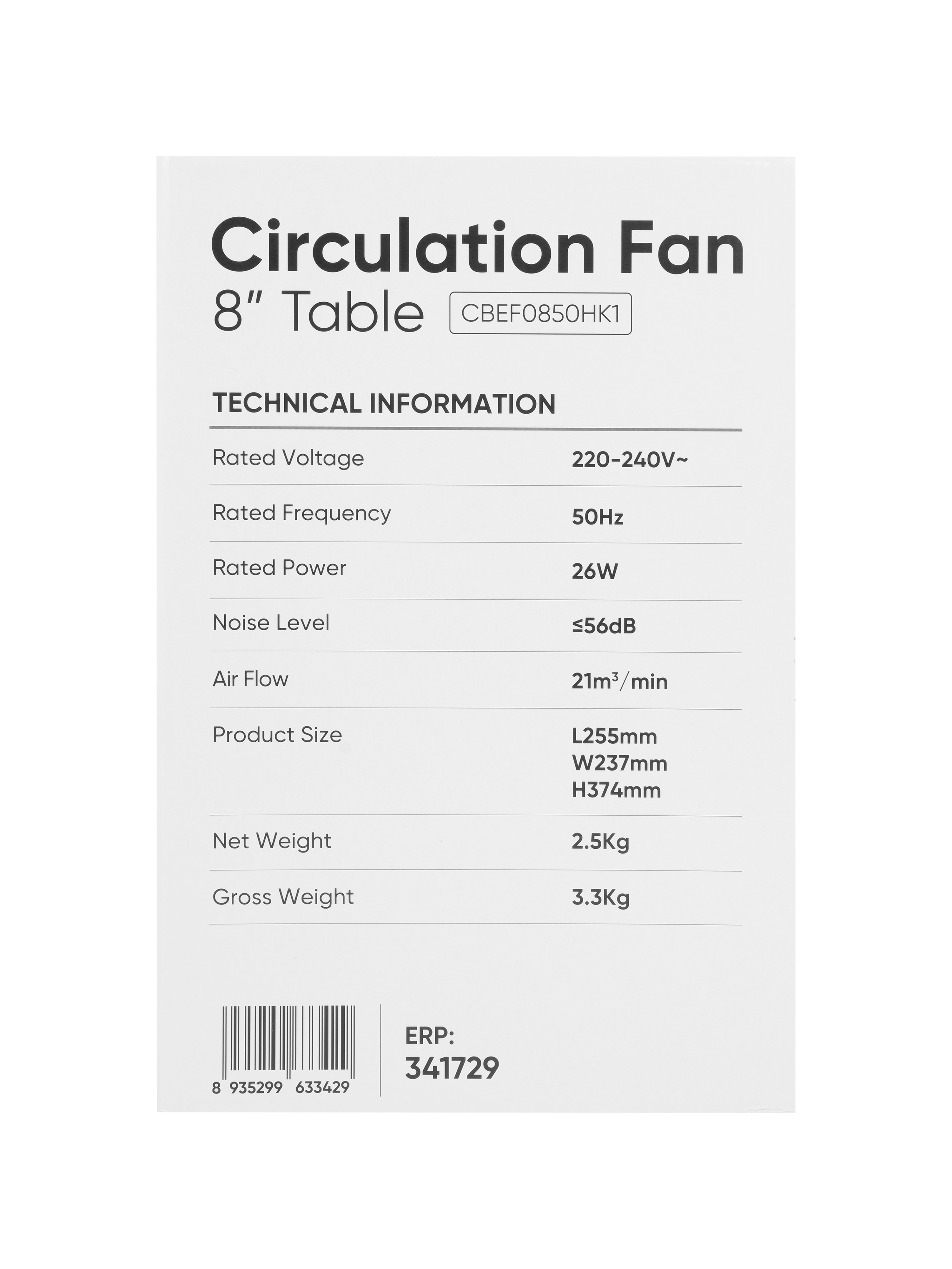 Mua tại TiktokQuạt tuần hoàn không khí để bàn 8", màu trắng + đen Chức năng