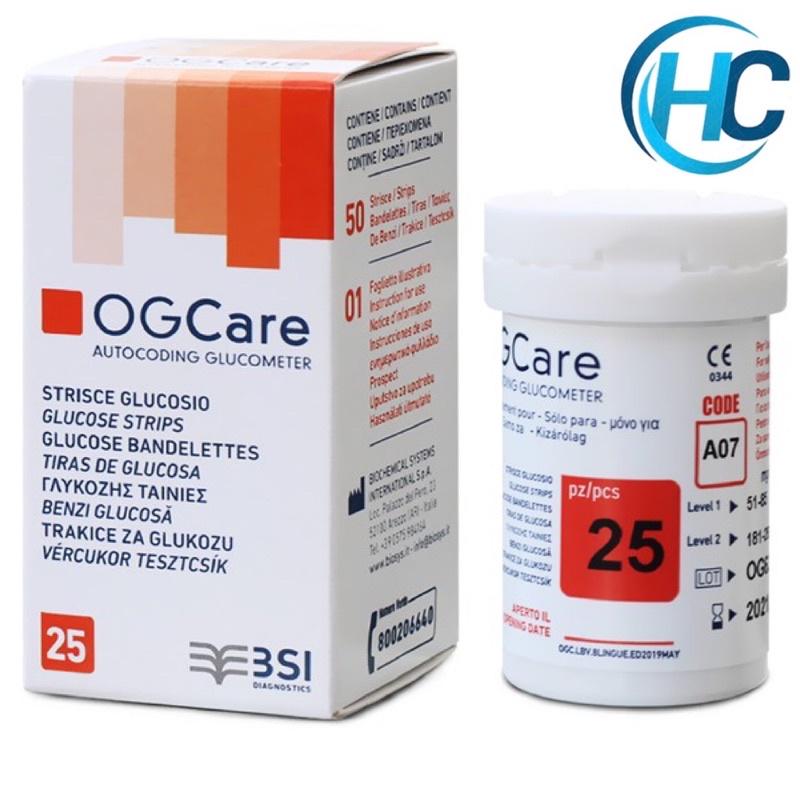- Que Thử Đường Huyết Ogcare (25 Que/ Hộp) là sản phẩm que thử dùng cho dòng máy đo đường huyết Ogcare của Ý có bán ở hầu khắp các cửa hàng dụng cụ y khoa