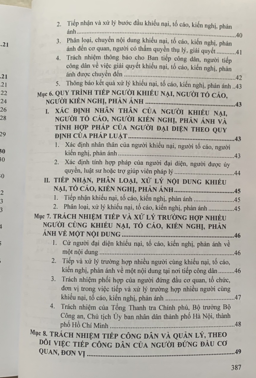 Mục 7. Trách nhiệm tiếp và xử lý trường hợp nhiều người cùng khiếu nại, tố cáo, kiến nghị, phản ánh về một nội dung