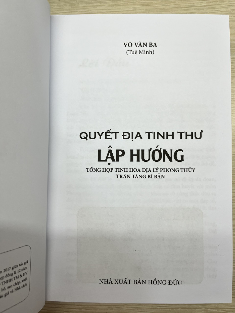 Cuốn sách Quyết Địa Tinh Thư - Lập Hướng là cuốn thứ 5 trong bộ Địa Lý Phong Thủy ''Quyết Địa Tinh Thư'' nhưng hoàn thành sau cùng, vì tính chất của Lý khí rất phức tạp, cần phải có thời gian tham khảo nhiều tài liệu, đối chiếu, sửa chữa; sợ rằng sai một ly đi một dặm.